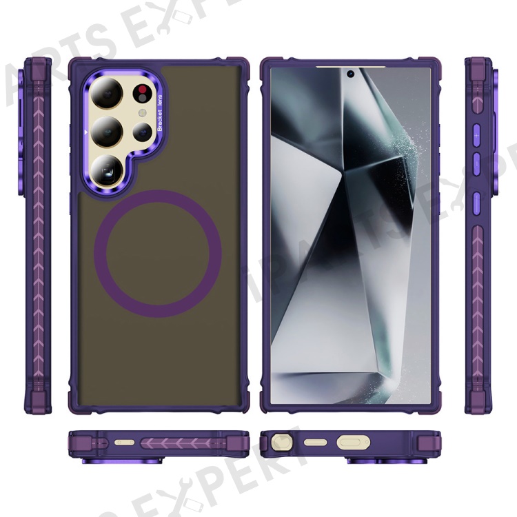 For Samsung Galaxy S24 Ultra Case with Lens Kickstand Matte Back Cover Magnetic Case - Purple