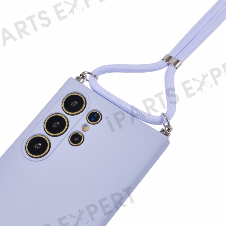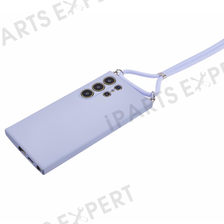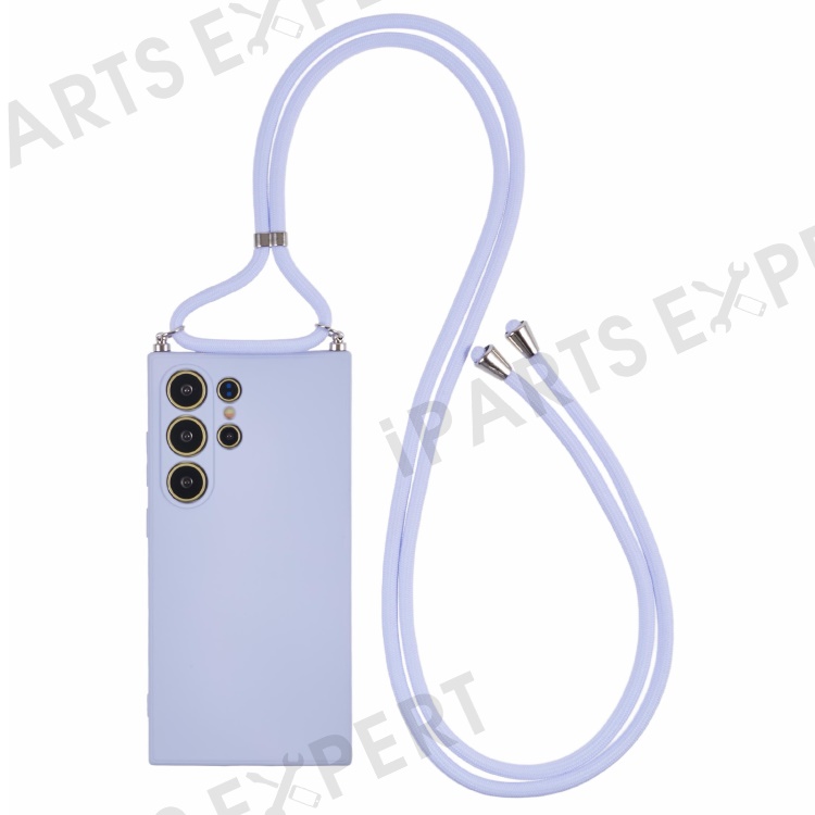 For Samsung Galaxy S24 Ultra Crossbody Case Flexible TPU Fiber Lining Anti-Shock Phone Cover - Light Purple
