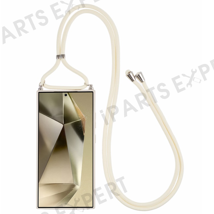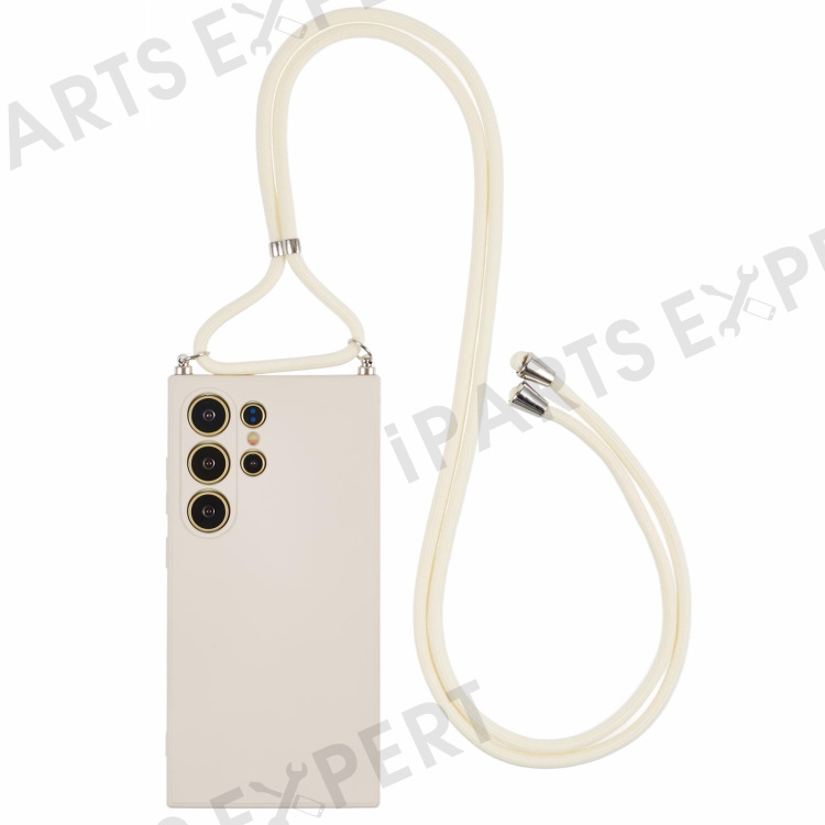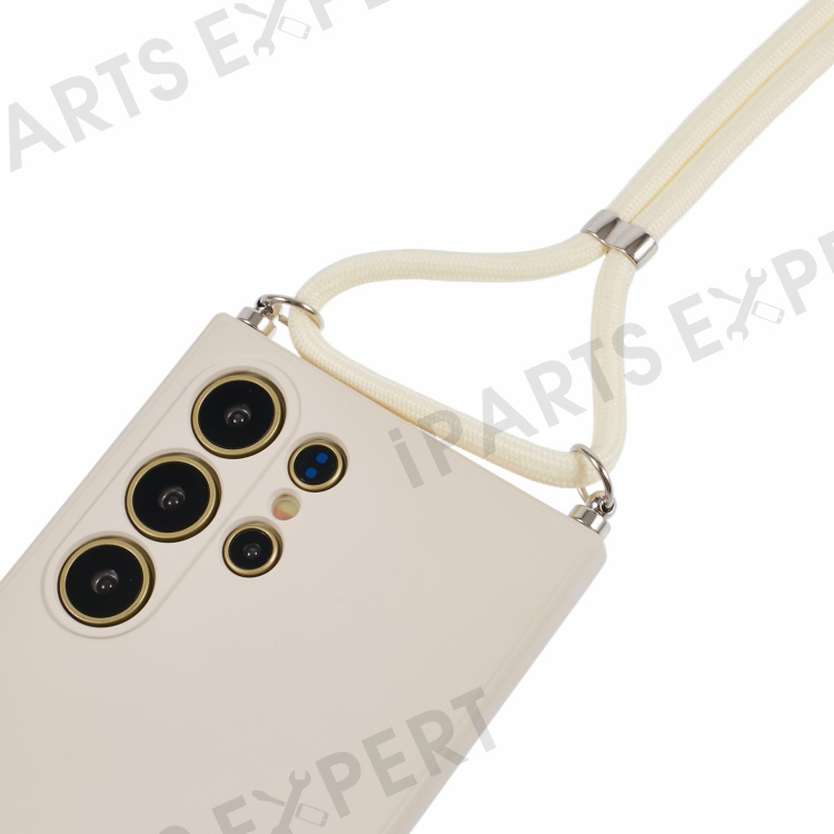 For Samsung Galaxy S24 Ultra Crossbody Case Flexible TPU Fiber Lining Anti-Shock Phone Cover - White
