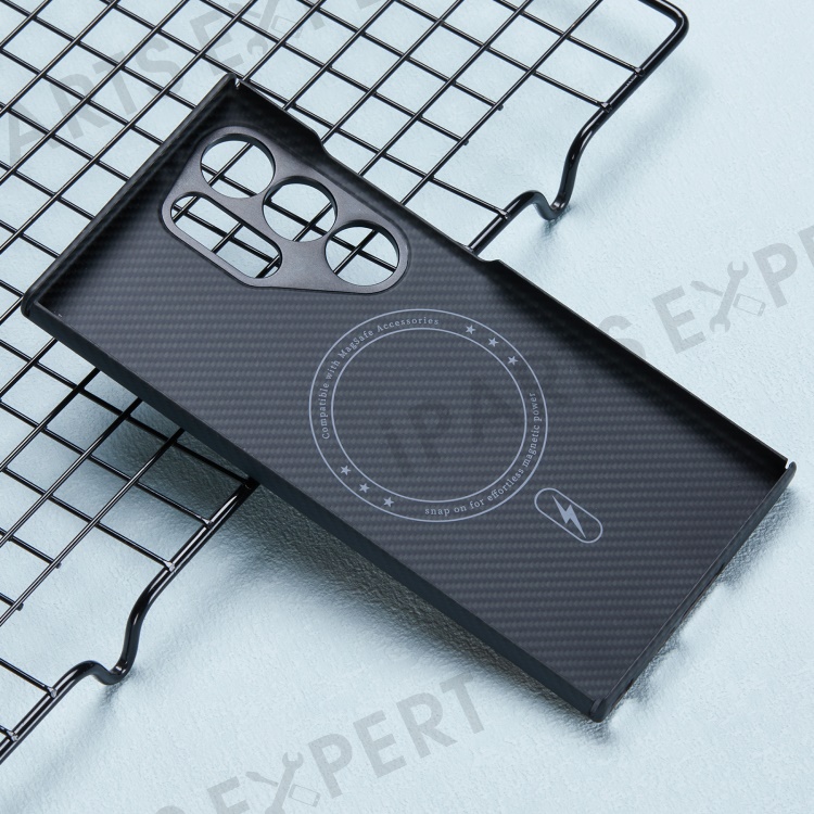 For Samsung Galaxy S24 Ultra Magnetic Case 600D Fine Texture Aramid Fiber Cover with Metal Lens Protector