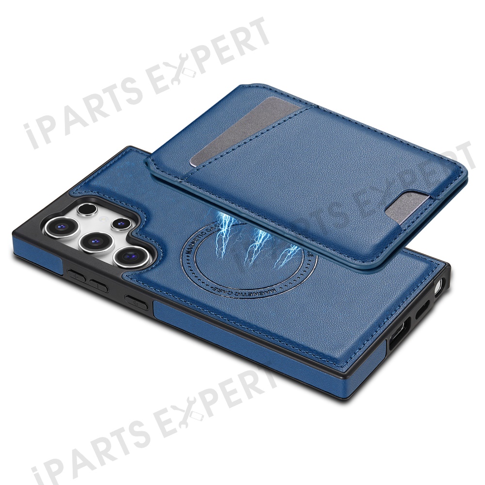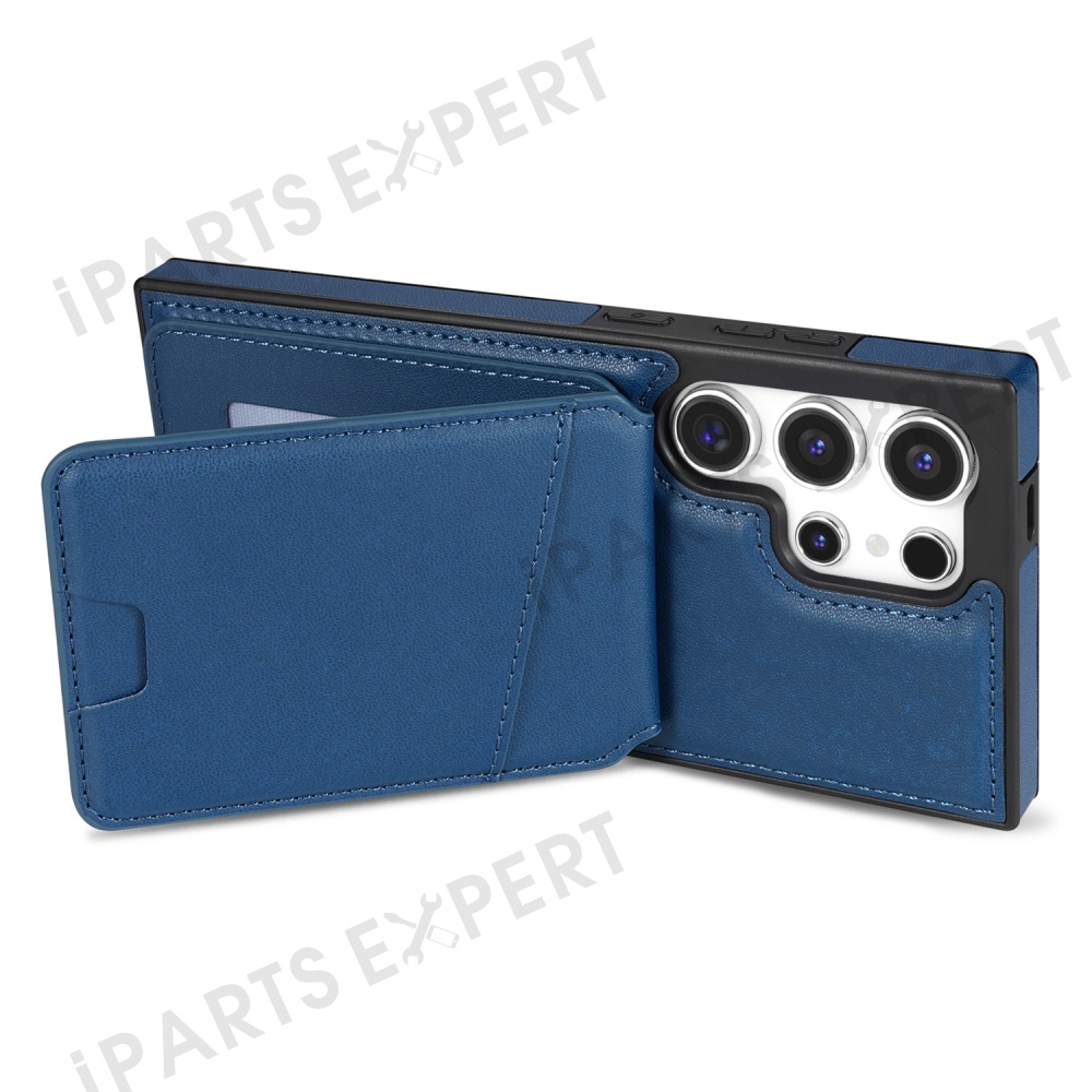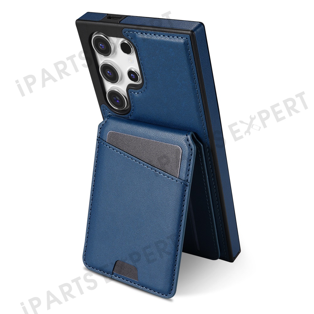 For Samsung Galaxy S24 Ultra Magnetic Case Detachable Card Holder Kickstand Leather Phone Back Cover - Blue