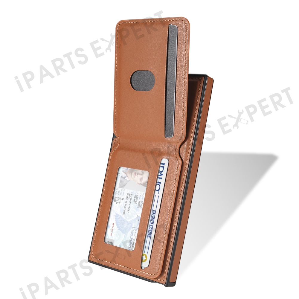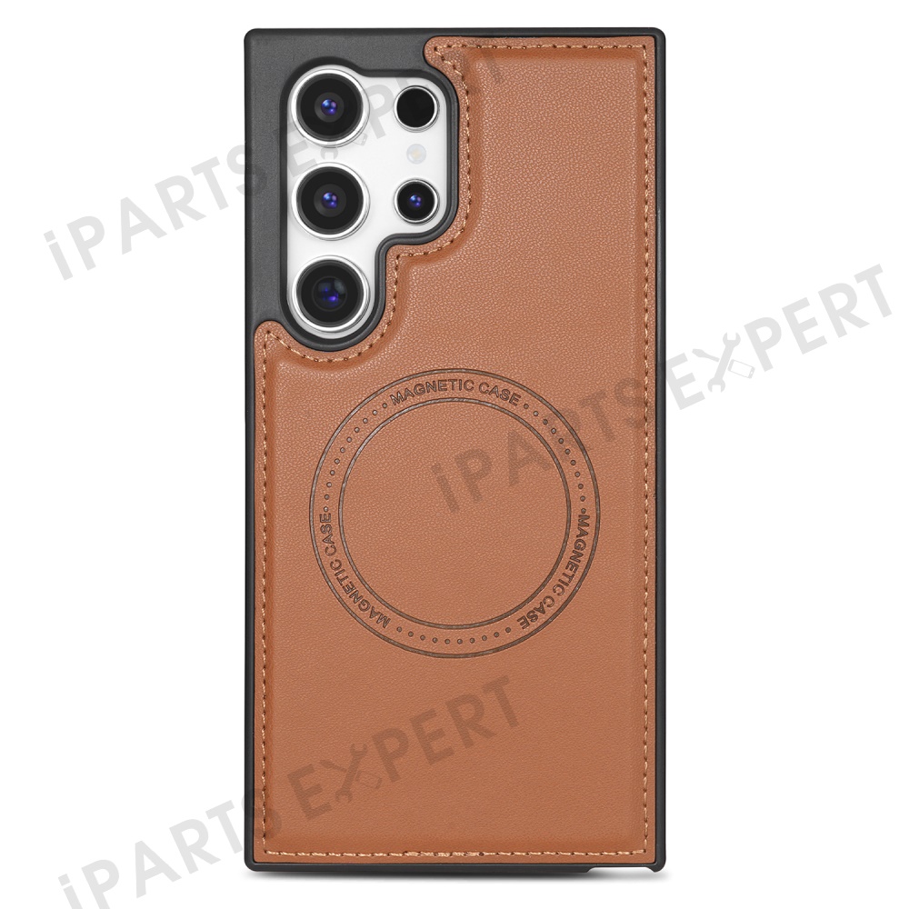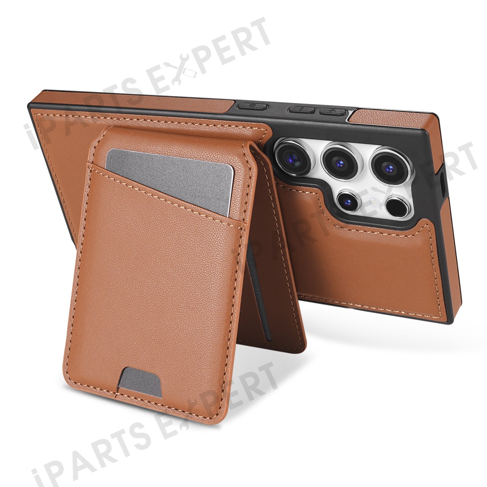 For Samsung Galaxy S24 Ultra Magnetic Case Detachable Card Holder Kickstand Leather Phone Back Cover - Brown