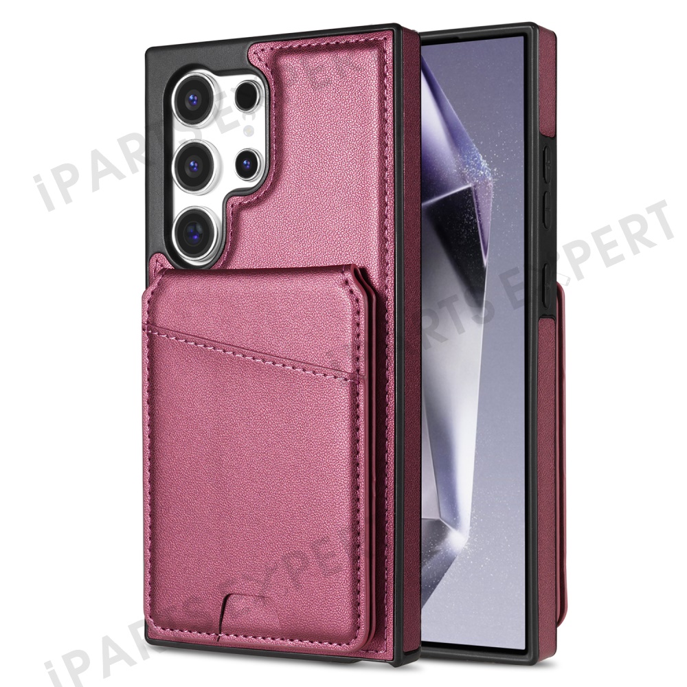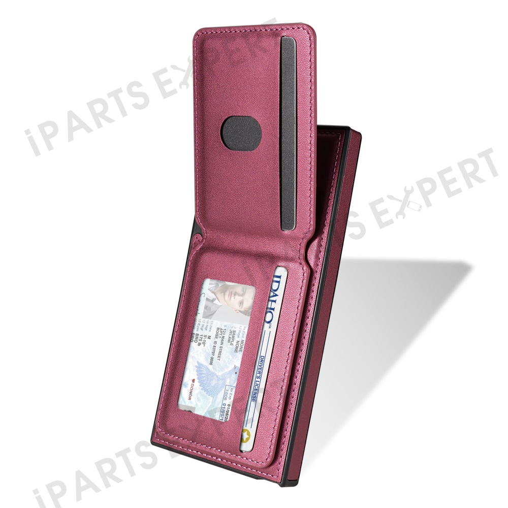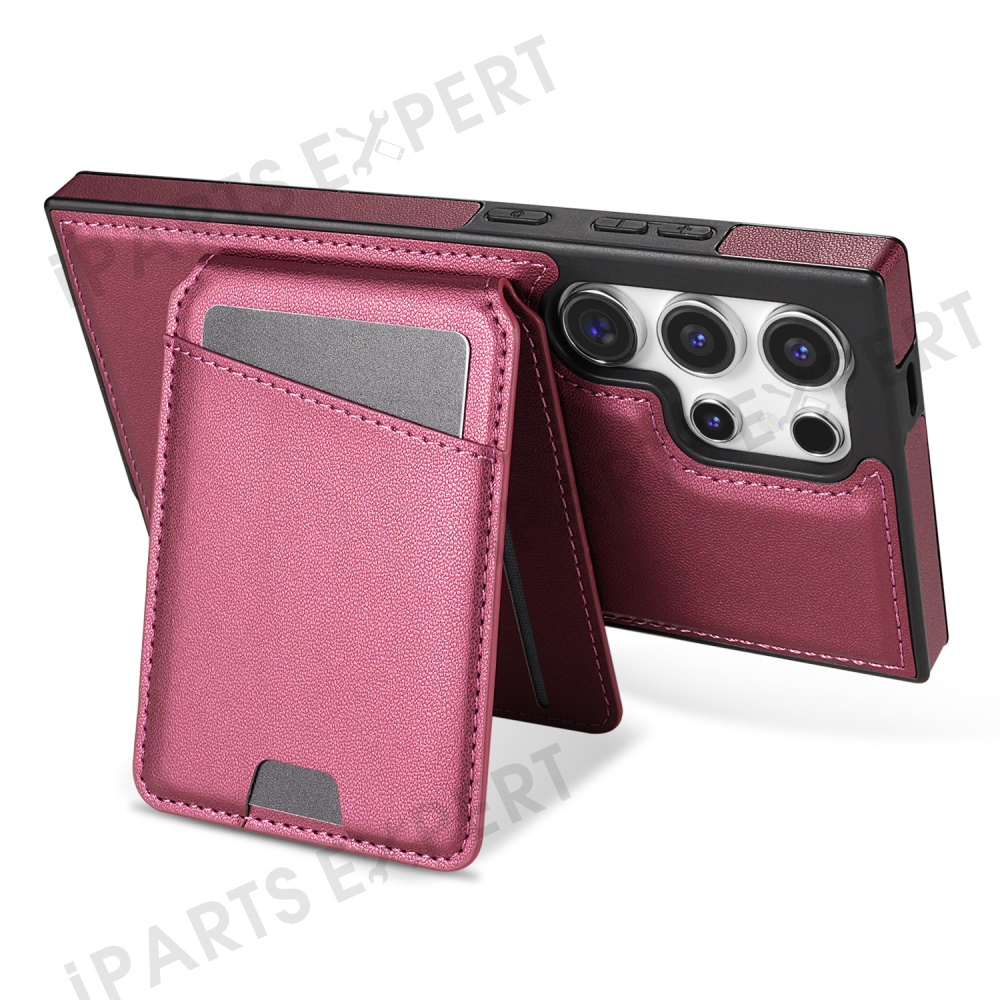 For Samsung Galaxy S24 Ultra Magnetic Case Detachable Card Holder Kickstand Leather Phone Back Cover - Red