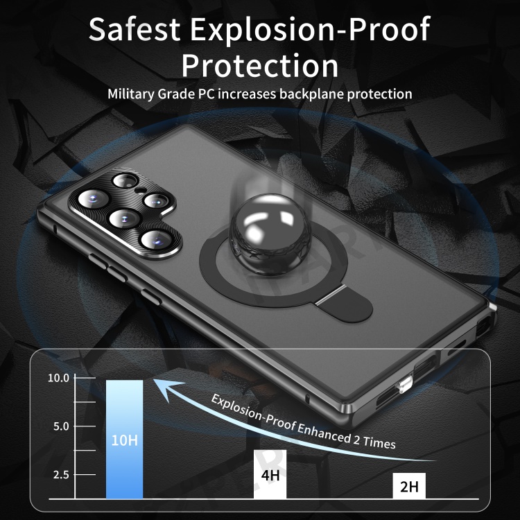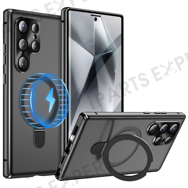 For Samsung Galaxy S24 Ultra Magnetic Case Kickstand Matte PC Cover with HD Tempered Glass Film - Black