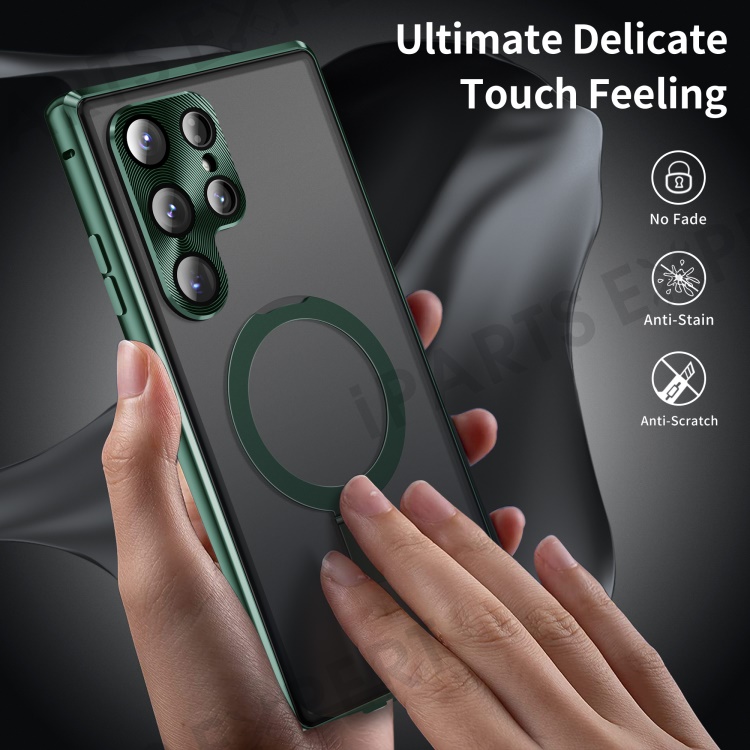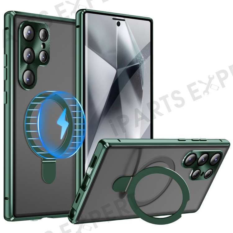 For Samsung Galaxy S24 Ultra Magnetic Case Kickstand Matte PC Cover with HD Tempered Glass Film - Green
