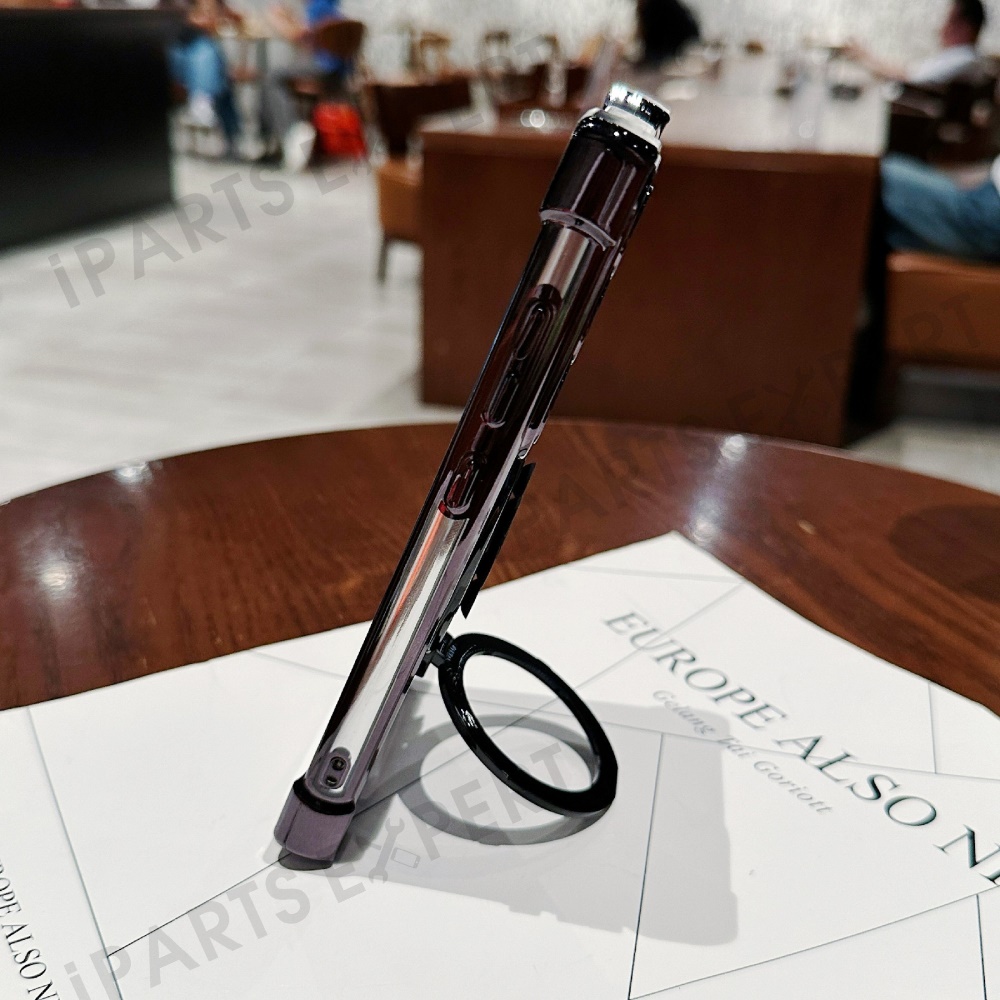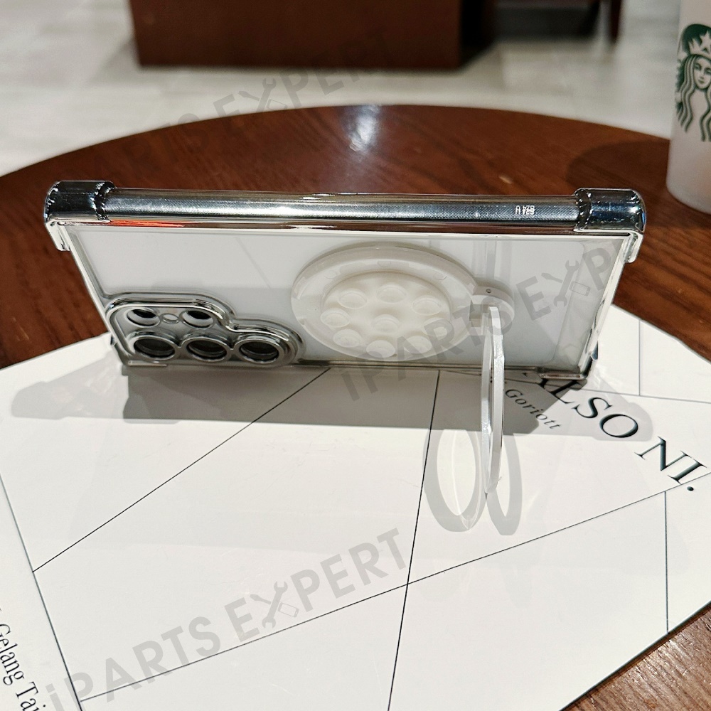 For Samsung Galaxy S24 Ultra Magnetic Case Suction Cup Kickstand PC Phone Cover with Four Corner Airbag - Purple