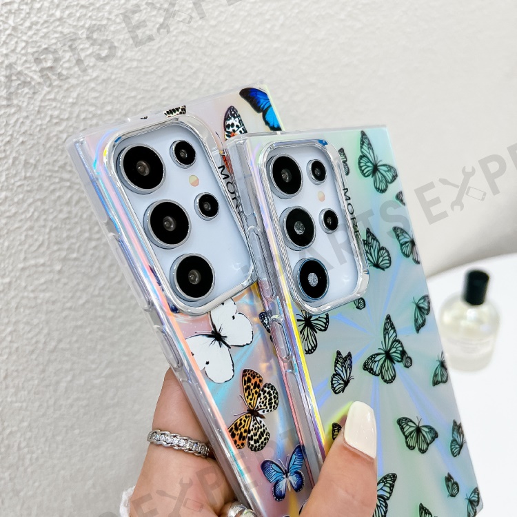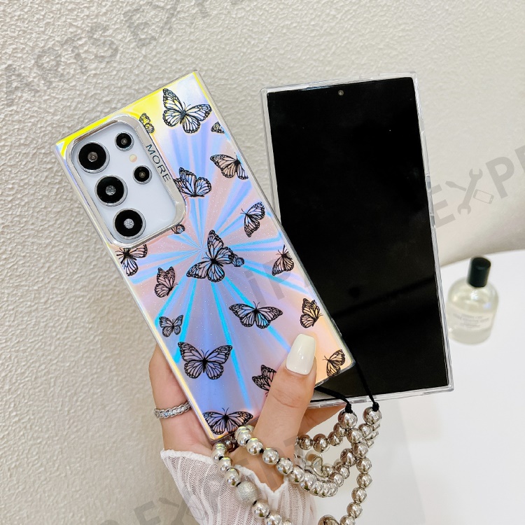 For Samsung Galaxy S24 Ultra Phone Case Electroplated Laser Butterfly Pattern PC+TPU Cover with Beaded Bracelet - AB3