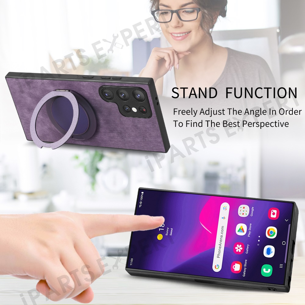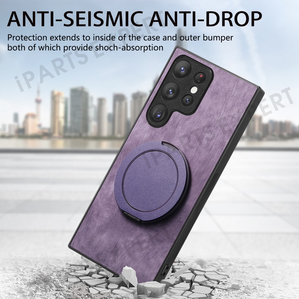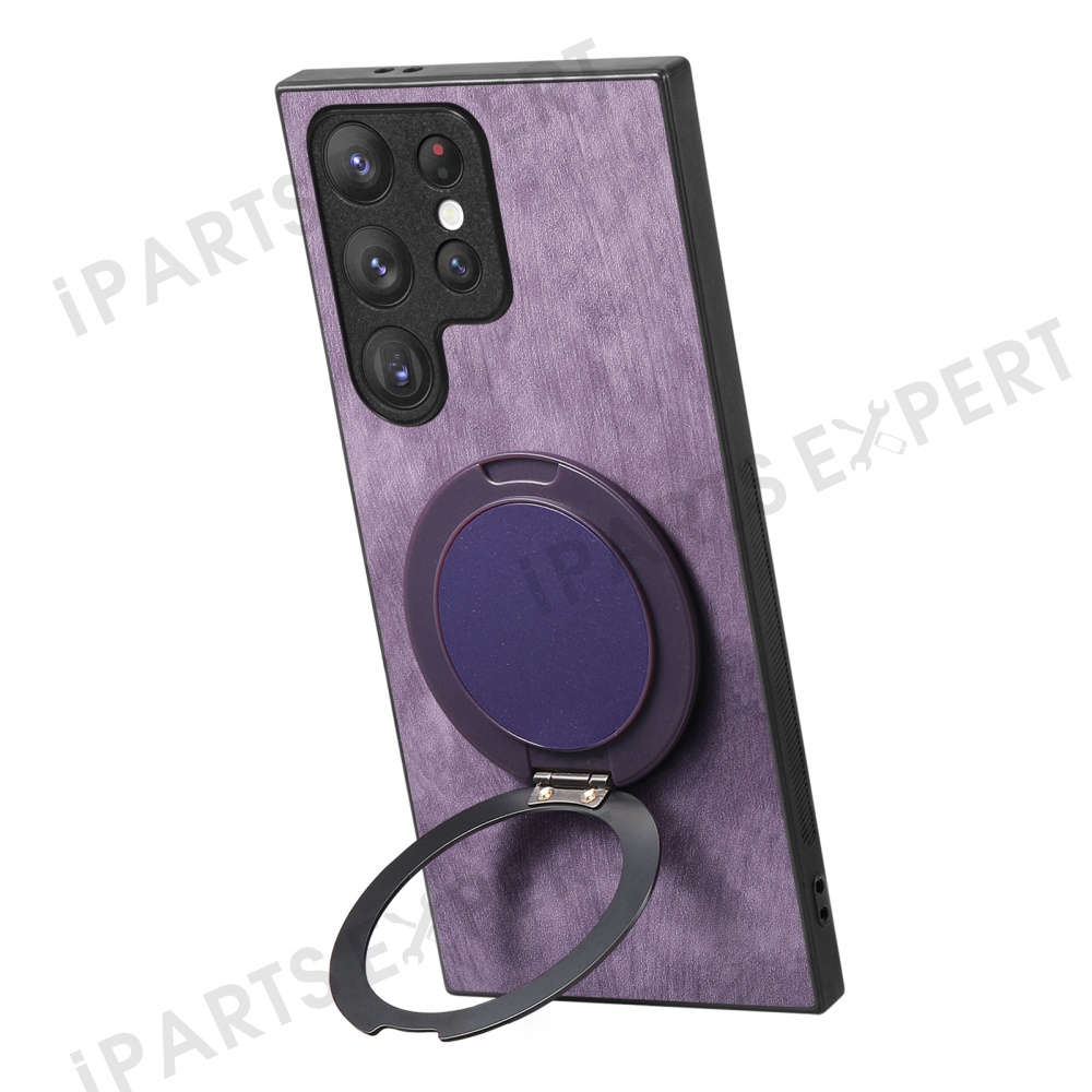 For Samsung Galaxy S24 Ultra Phone Case with Rotating Kickstand Stress Relief Retro Leather Back Cover - Purple
