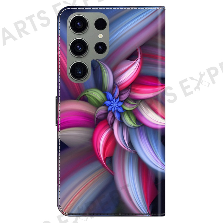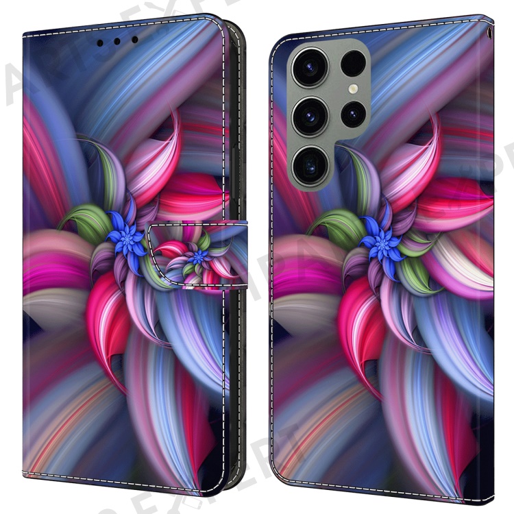 For Samsung Galaxy S24 Ultra Wallet Case PU Leather 3D Pattern Printing Stand Cover - Colorful Flowers