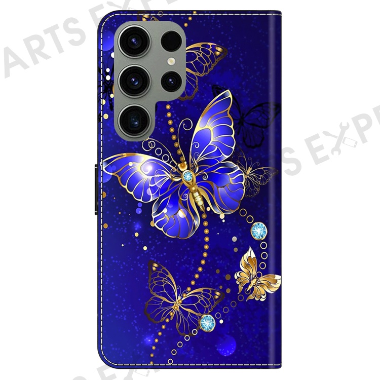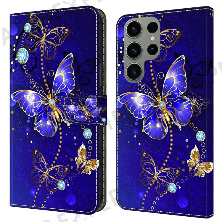 For Samsung Galaxy S24 Ultra Wallet Case PU Leather 3D Pattern Printing Stand Cover - Diamond Butterfly