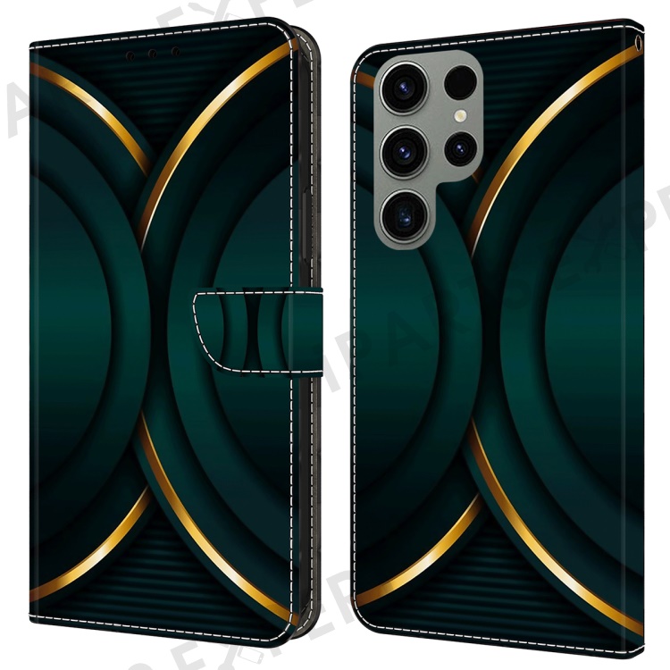 For Samsung Galaxy S24 Ultra Wallet Case PU Leather 3D Pattern Printing Stand Cover - Gold Contour