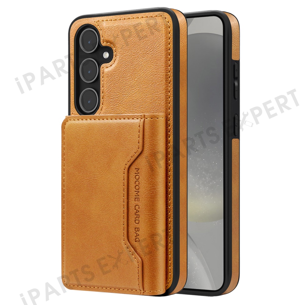 For Samsung Galaxy S25 Magnetic Case Leather Back Phone Cover with Detachable Card Bag - Brown