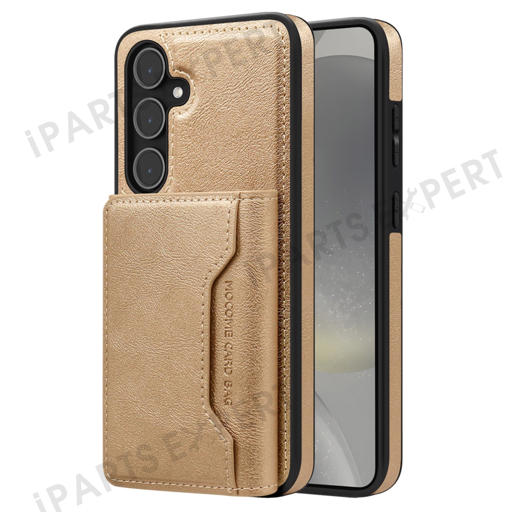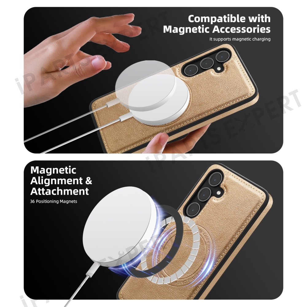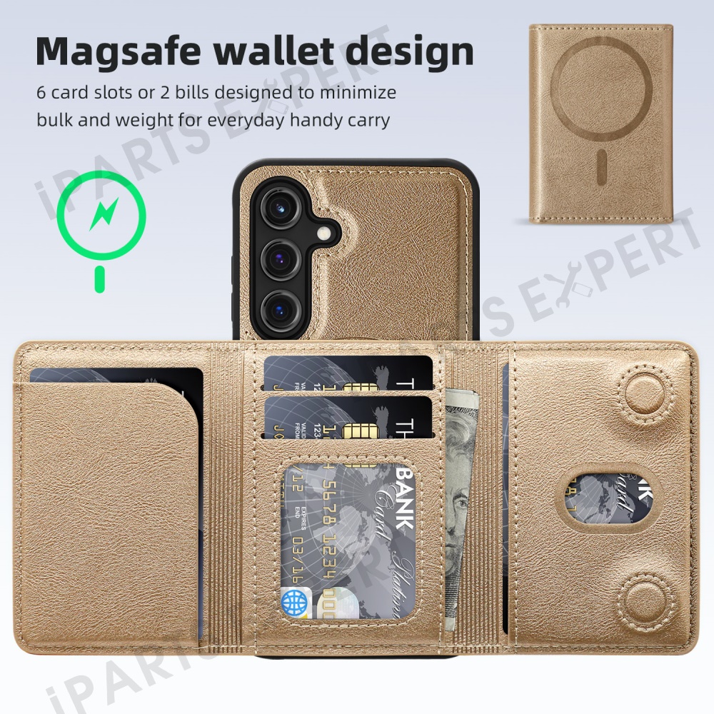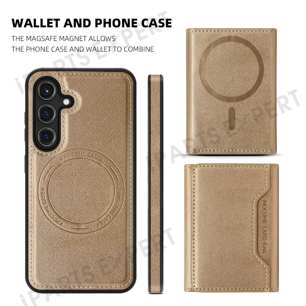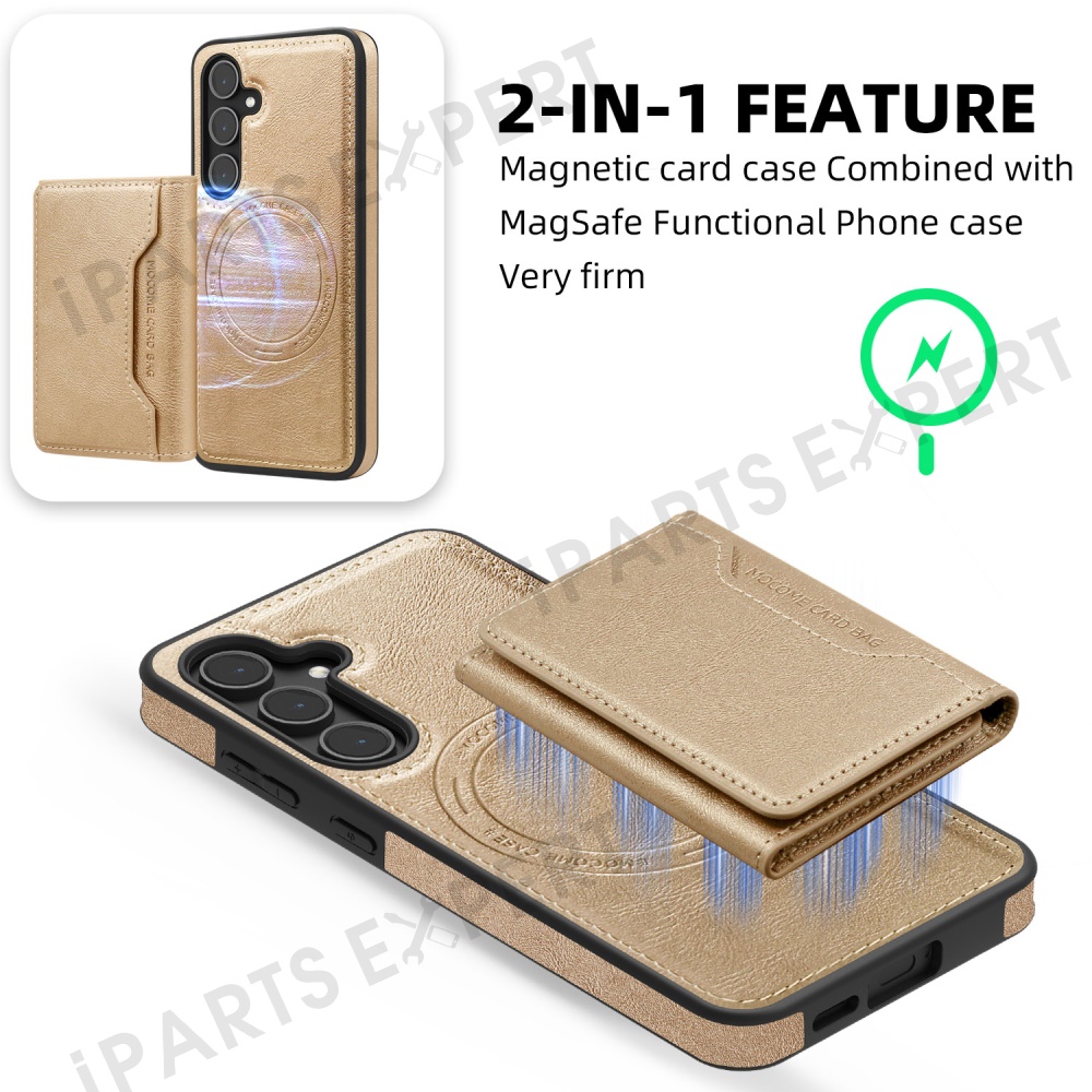 For Samsung Galaxy S25 Magnetic Case Leather Back Phone Cover with Detachable Card Bag - Gold