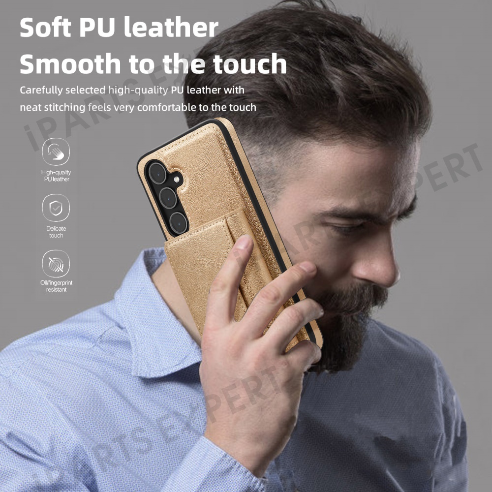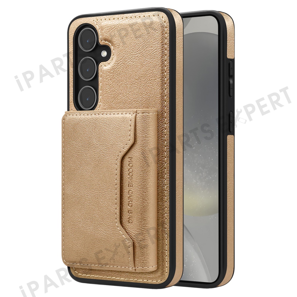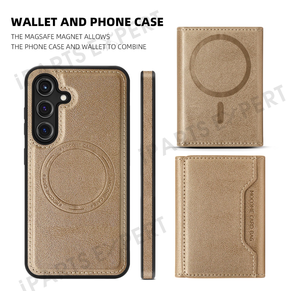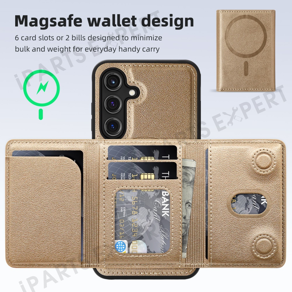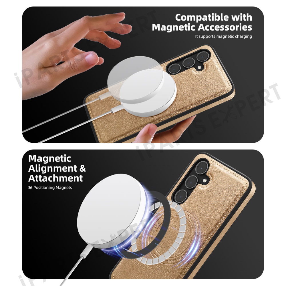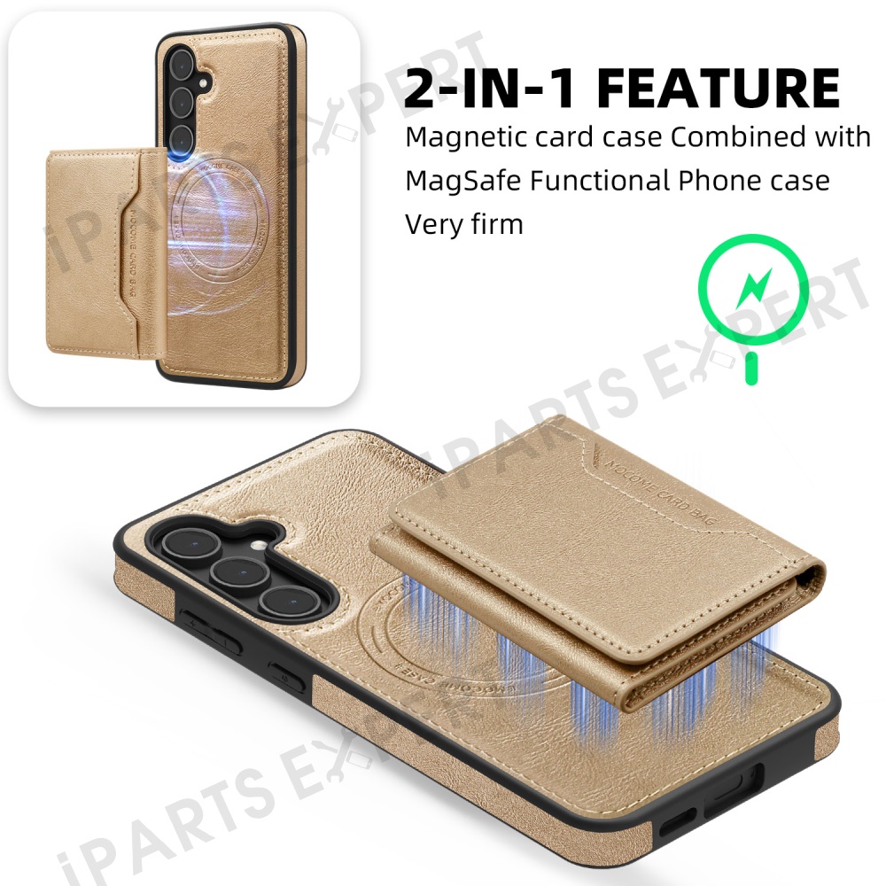 For Samsung Galaxy S25+ Magnetic Case Leather Back Phone Cover with Detachable Card Bag - Gold