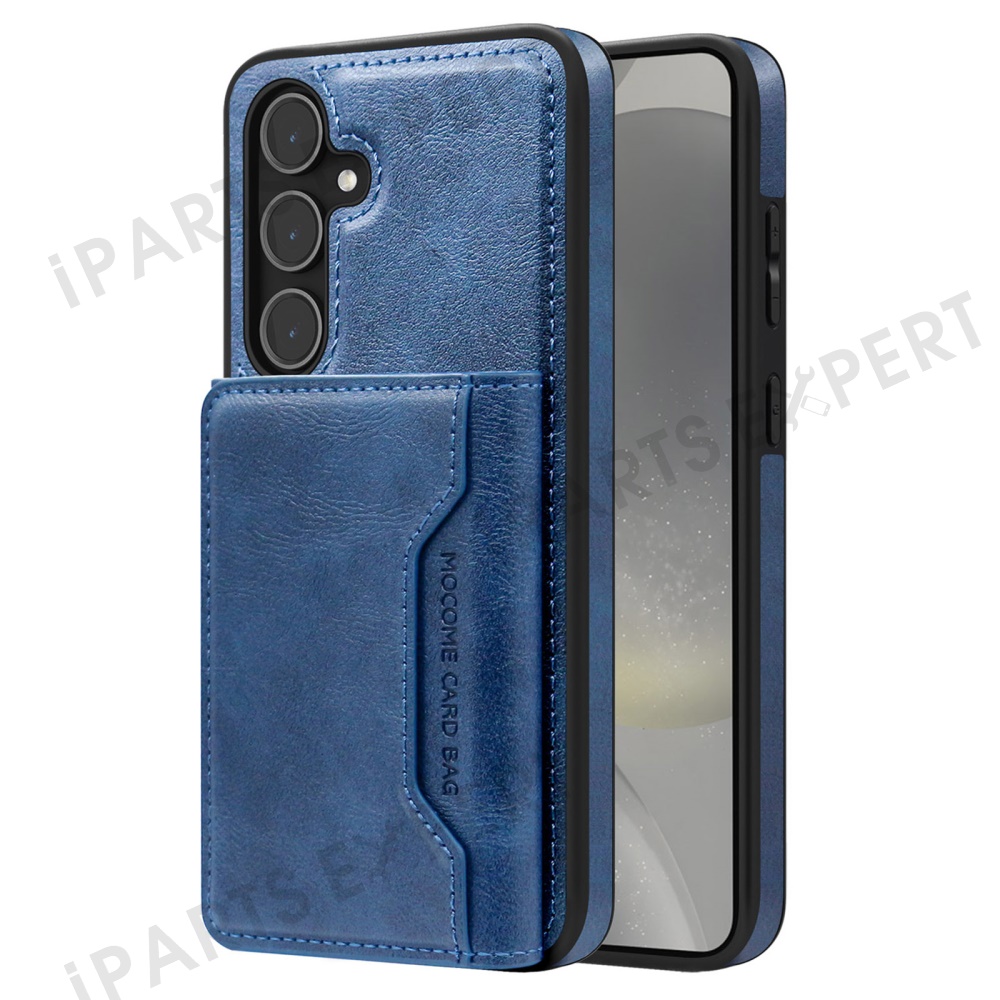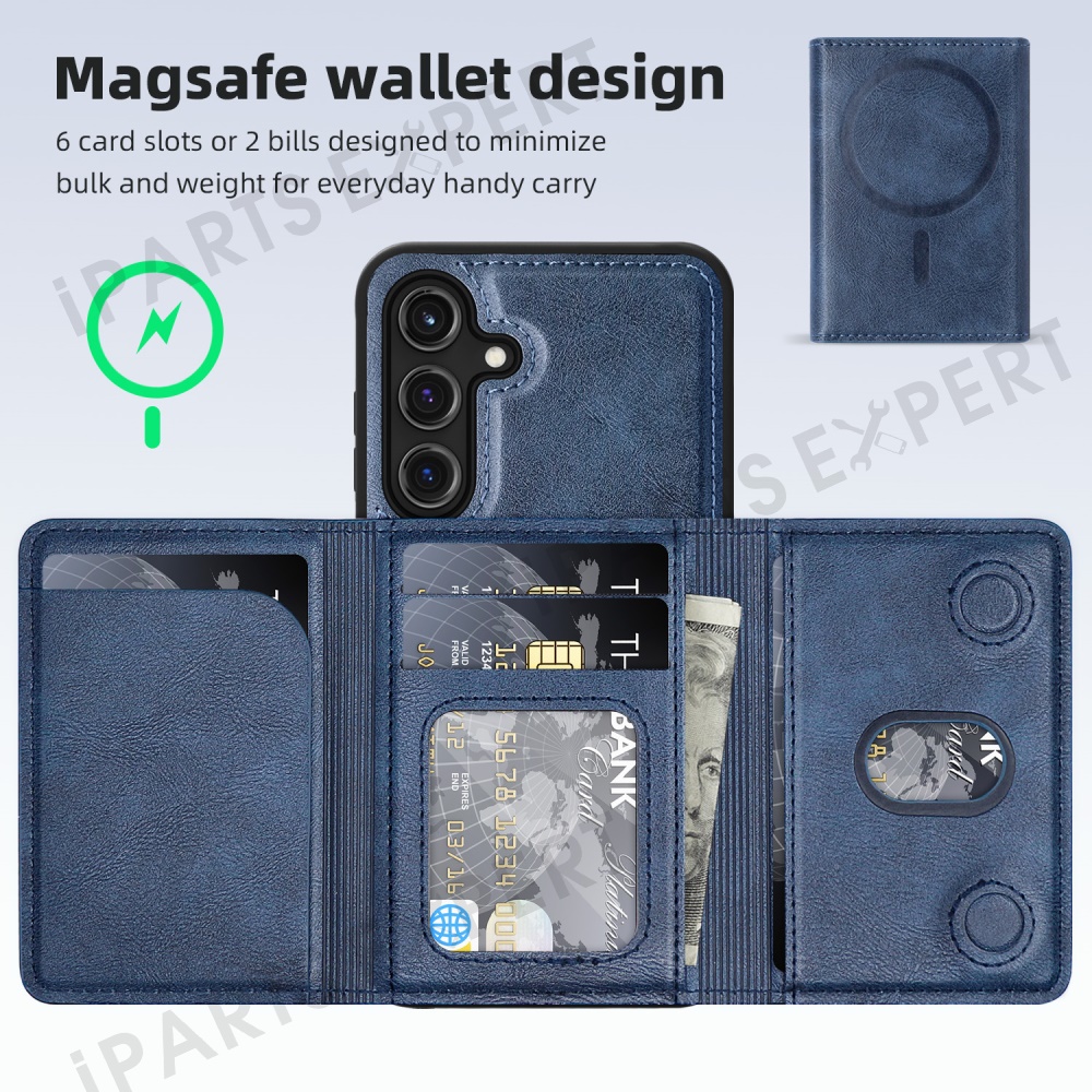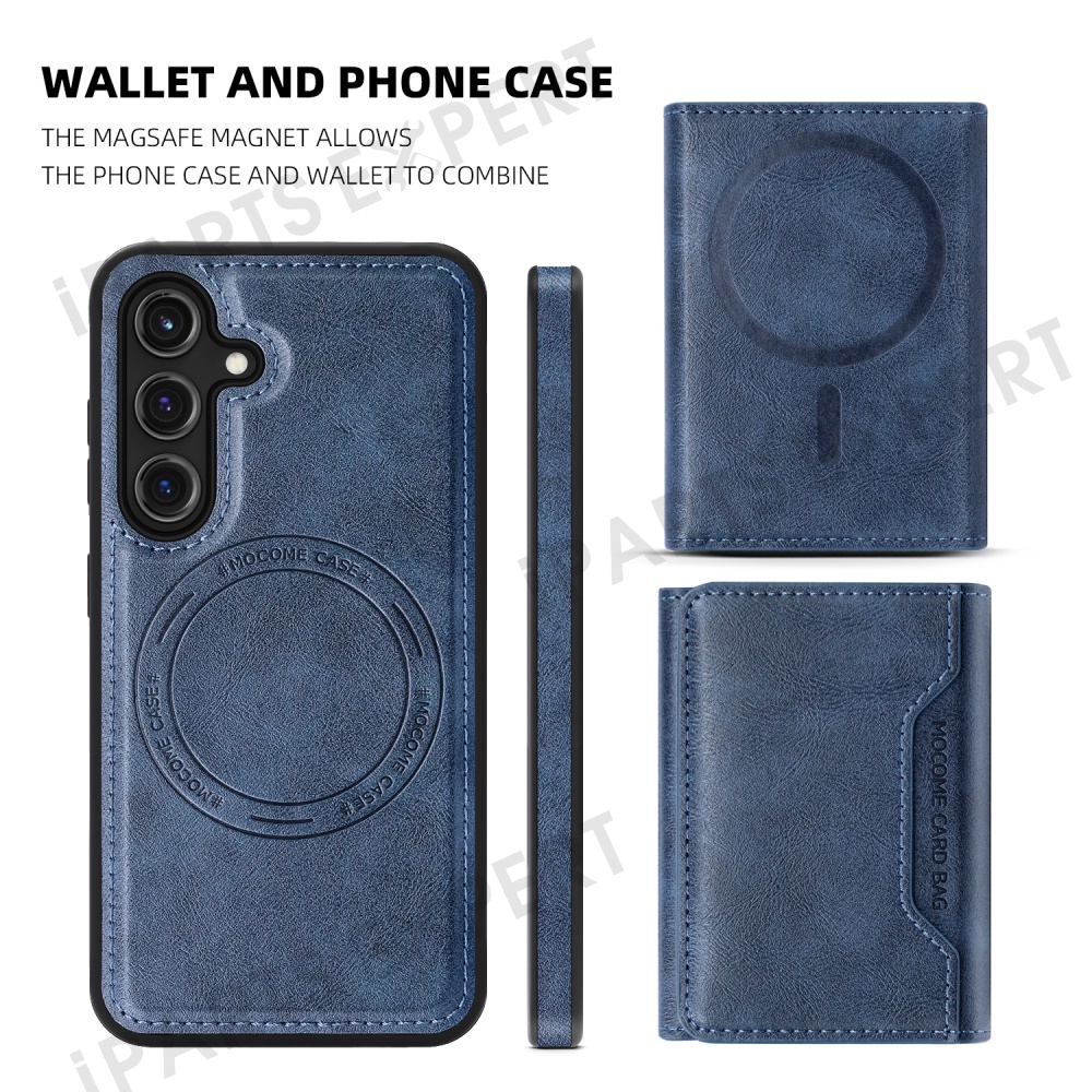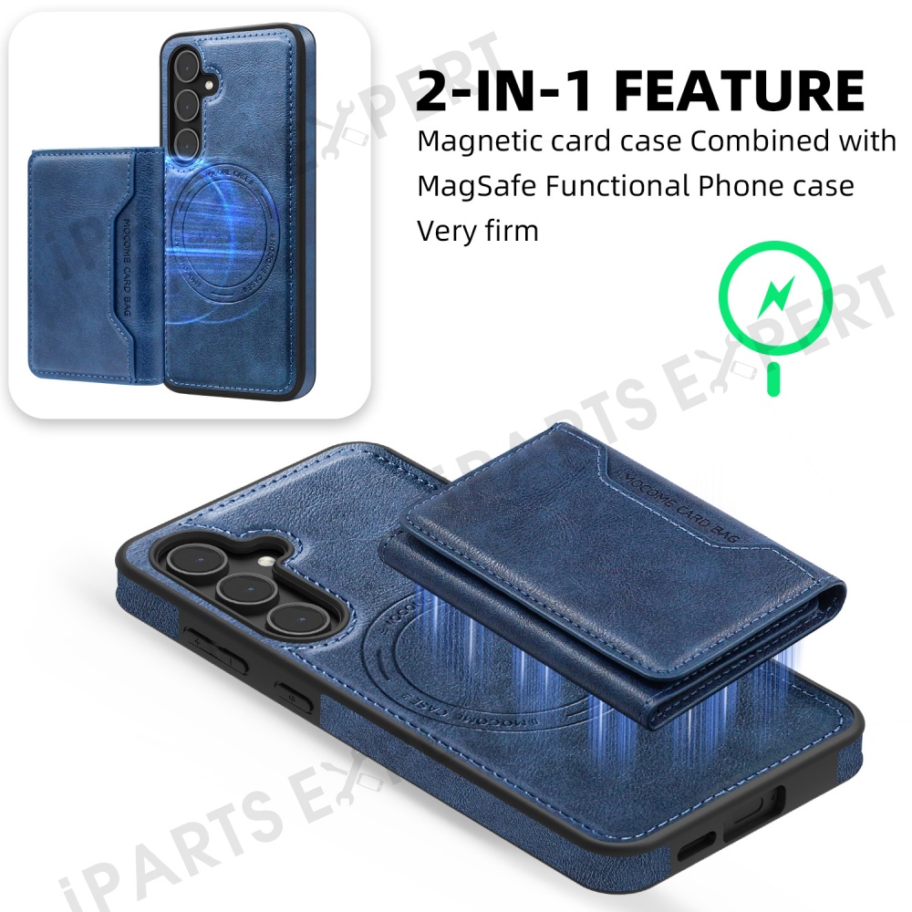For Samsung Galaxy S25 Magnetic Case Leather Back Phone Cover with Detachable Card Bag - Sapphire