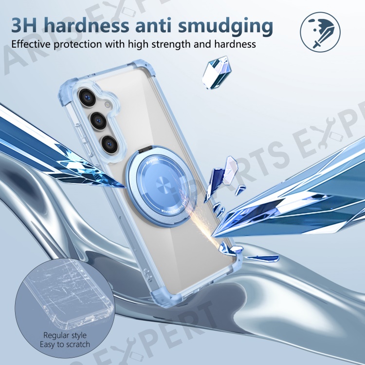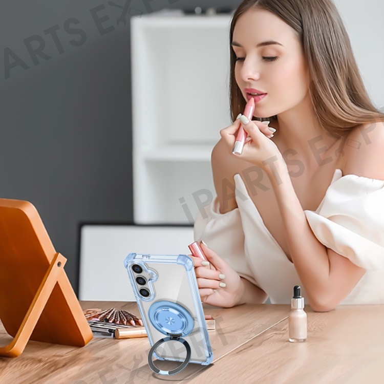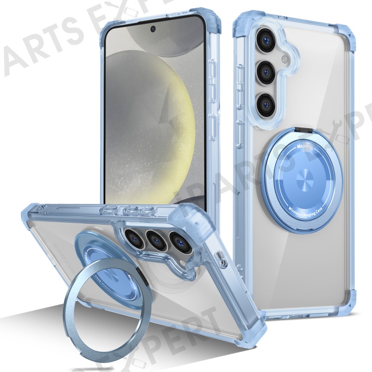 For Samsung Galaxy S25+ Magnetic Case Rotating Kickstand PC+TPU Back Cover - Transparent Blue
