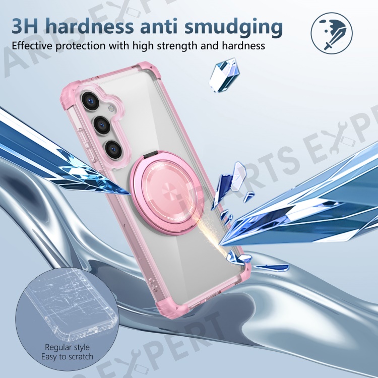 For Samsung Galaxy S25+ Magnetic Case Rotating Kickstand PC+TPU Back Cover - Transparent Pink