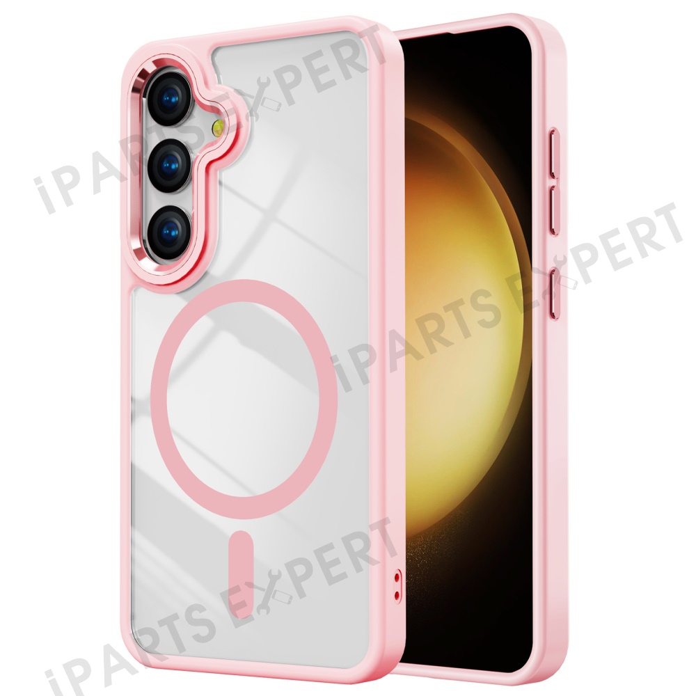 For Samsung Galaxy S25+ Magnetic Case TPU+PC Clear Phone Cover - Pink
