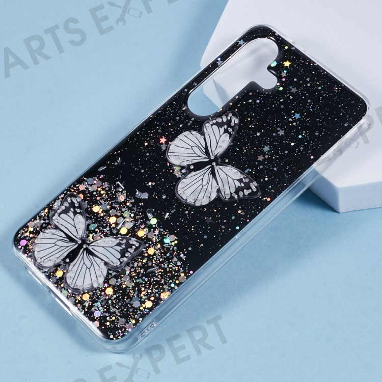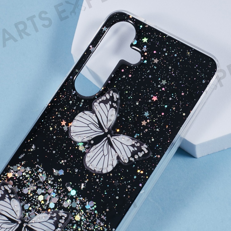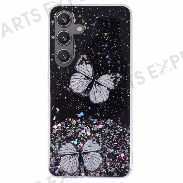 For Samsung Galaxy S25 Case Epoxy PVC Butterfly TPU Aesthetics Phone Cover - Black