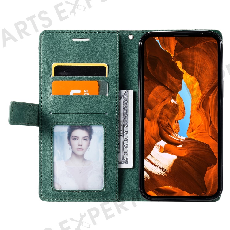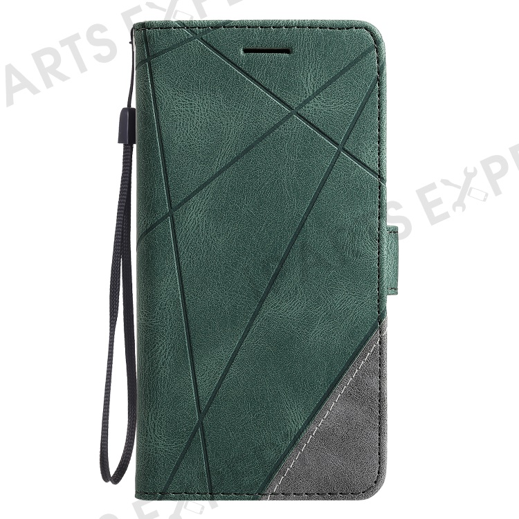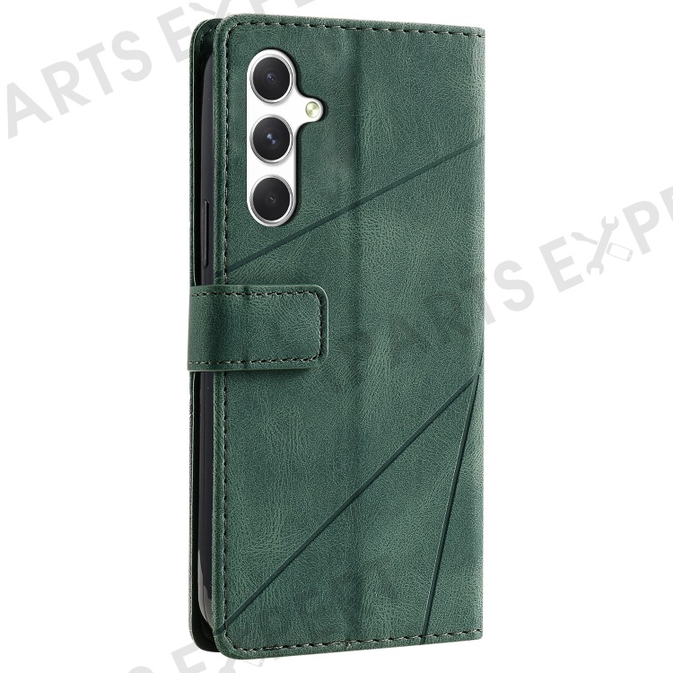 For Samsung Galaxy S25+ Case Imprinted Lines PU Leather Splicing Wallet Phone Cover - Green
