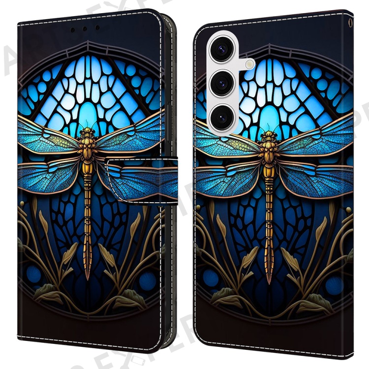 For Samsung Galaxy S25 Case Pattern Printed Protective Cover TPU+PU Leather Flip Phone Case - Blue Dragonfly