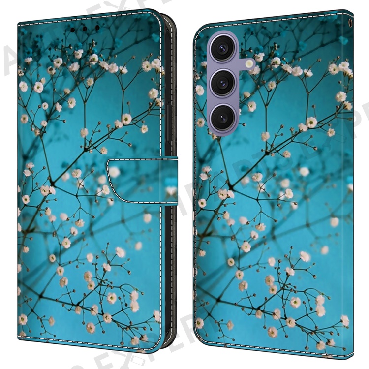 For Samsung Galaxy S25+ Case Pattern Printed Protective Cover TPU+PU Leather Flip Phone Case - Flower Branch