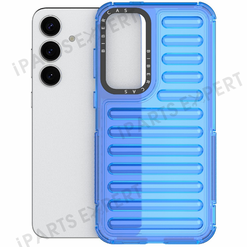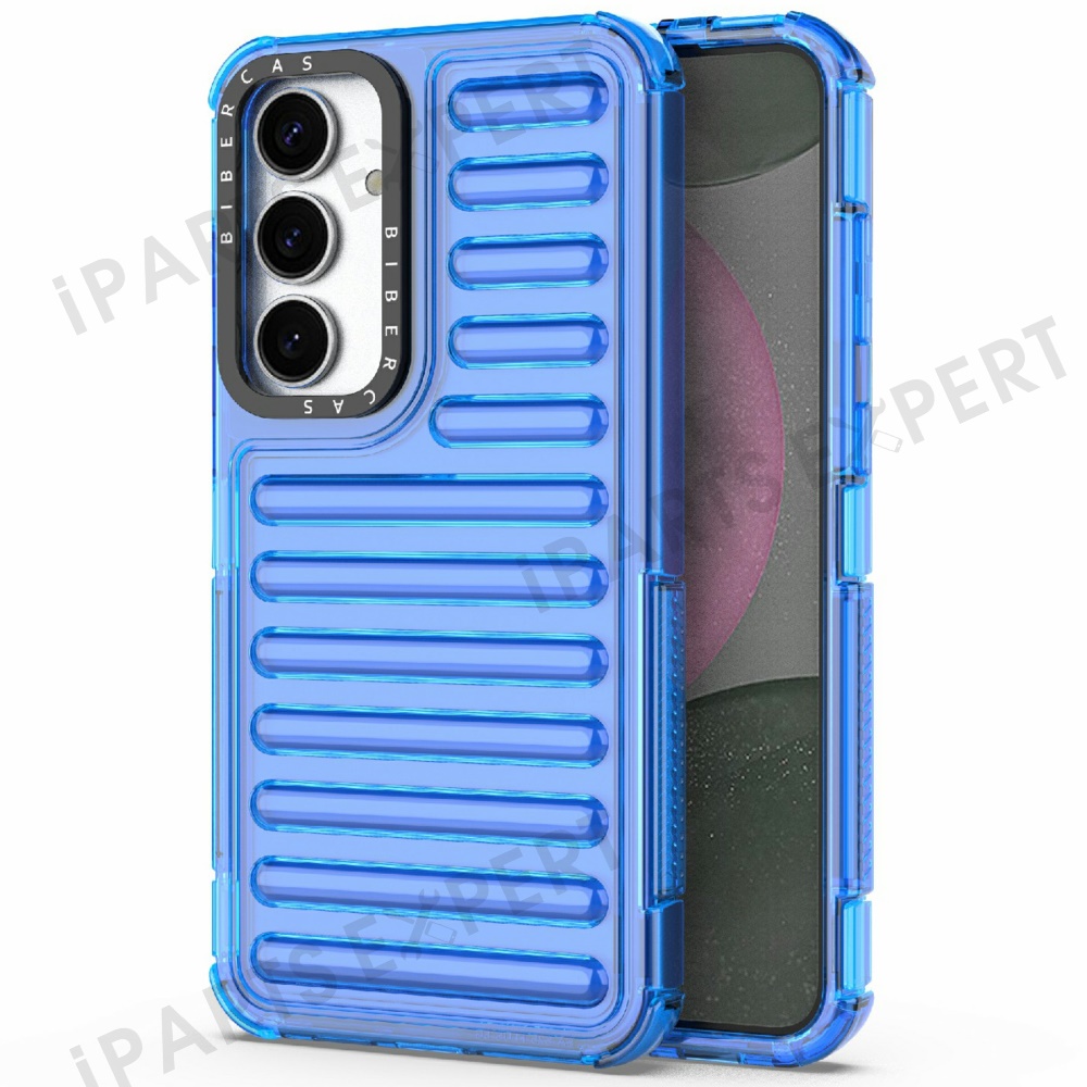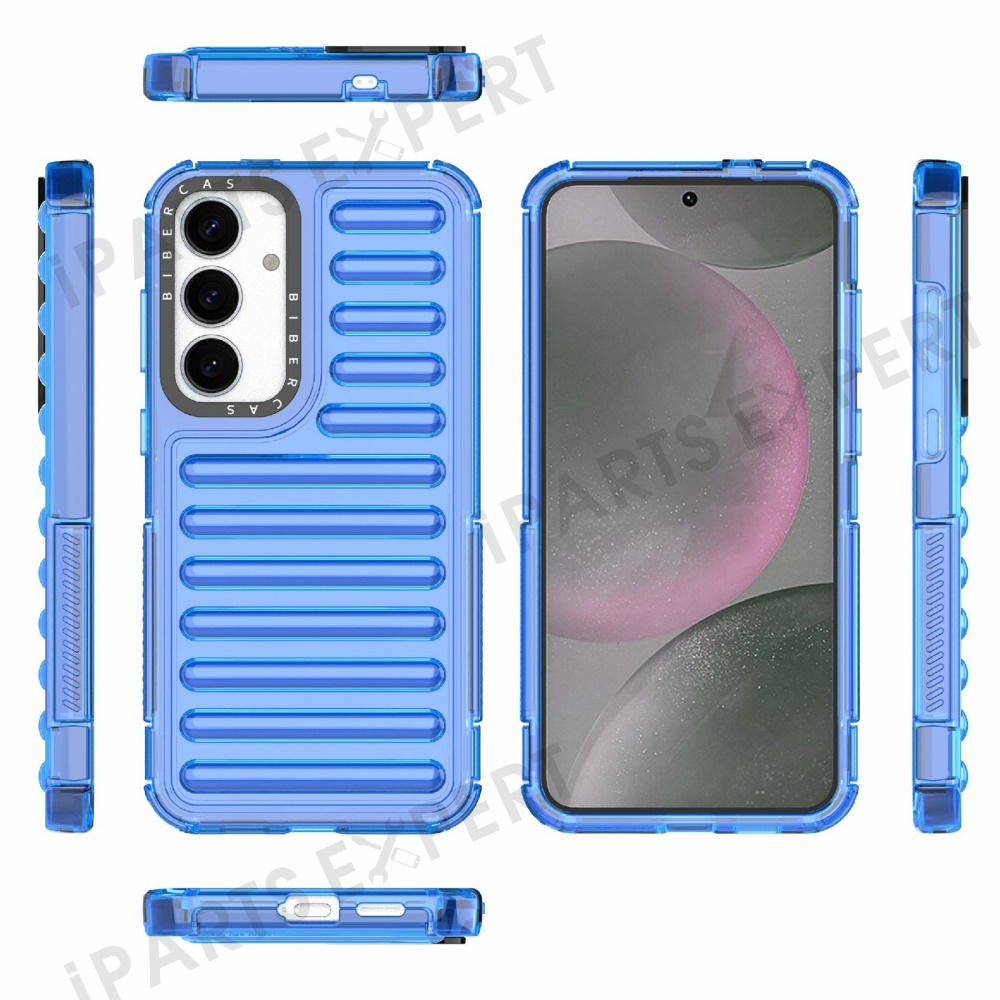 For Samsung Galaxy S25+ Case Stripe Design Anti-Slip Detachable TPU+PC Phone Cover - Blue