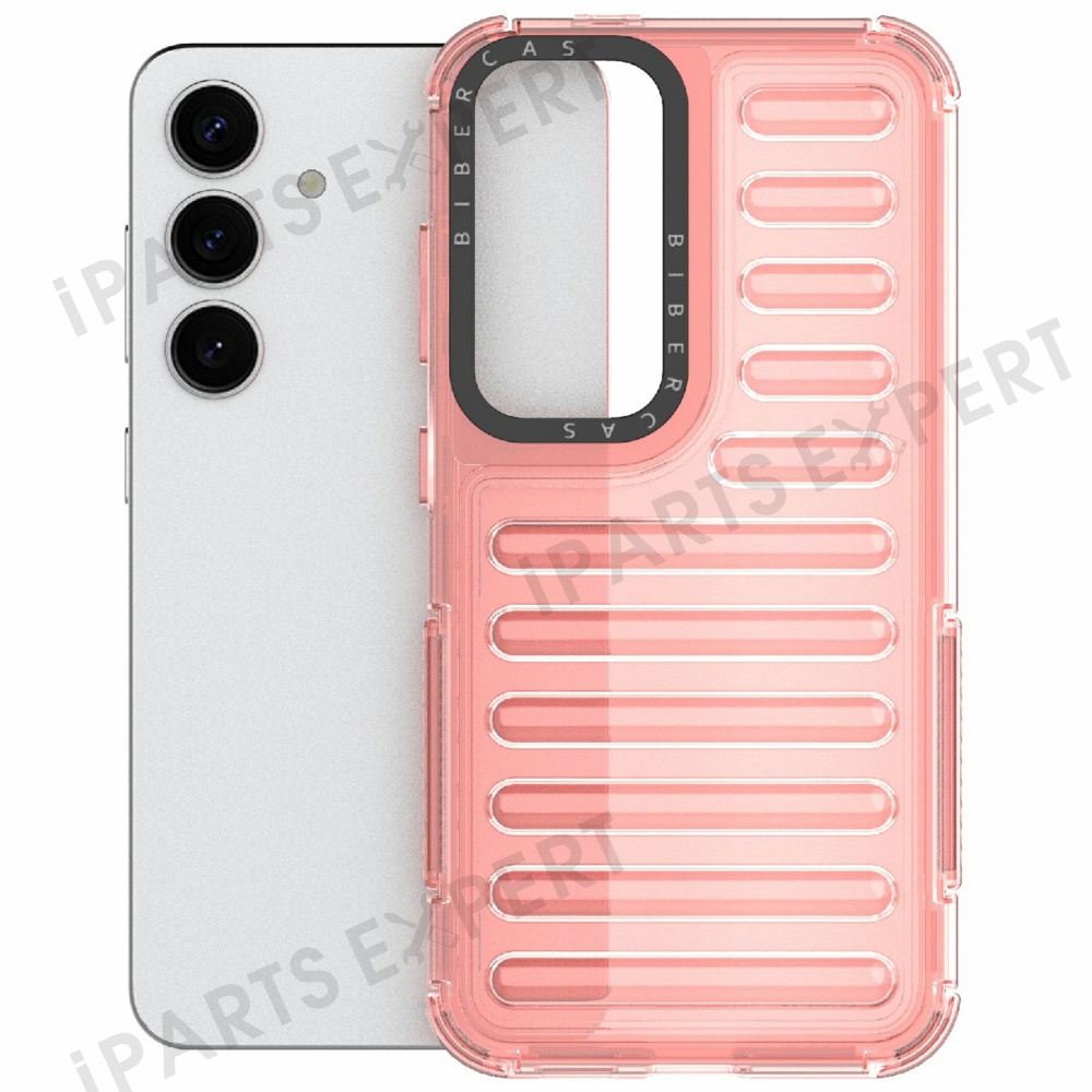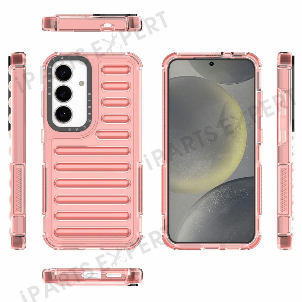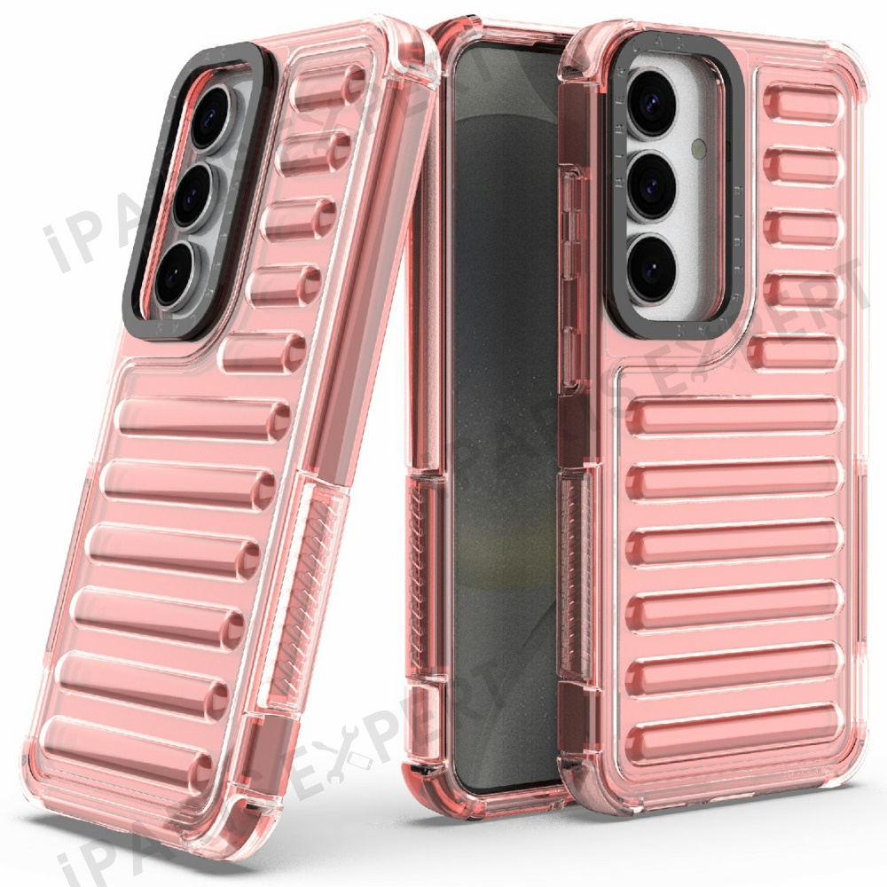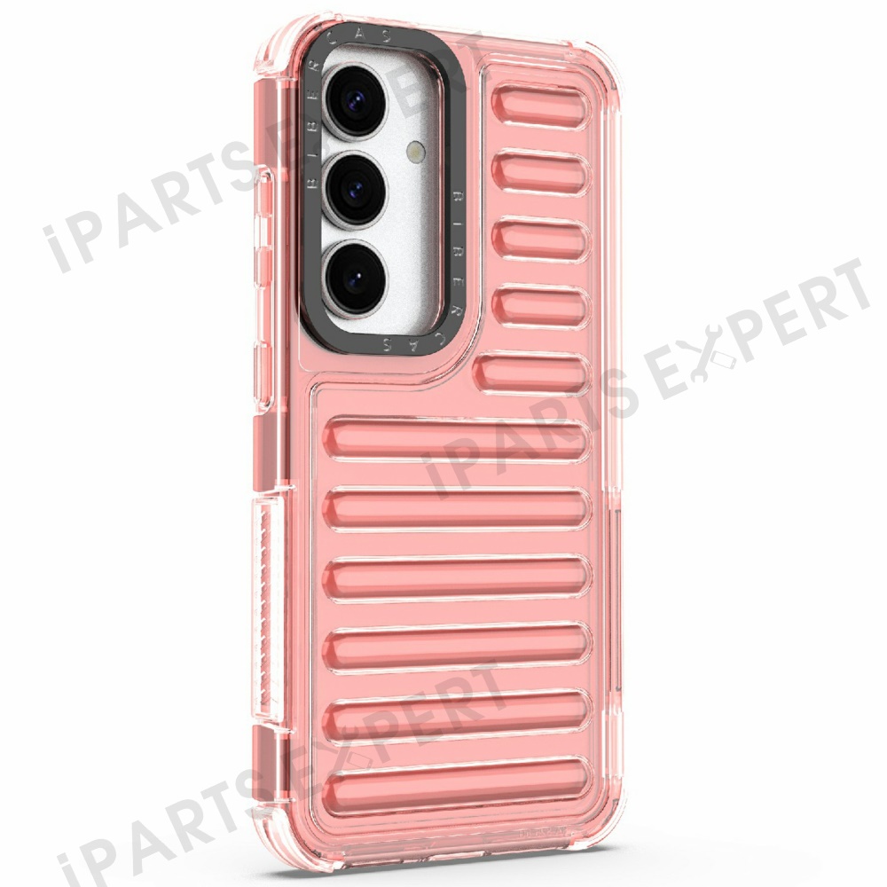 For Samsung Galaxy S25 Case Stripe Design Anti-Slip Detachable TPU+PC Phone Cover - Deep Pink