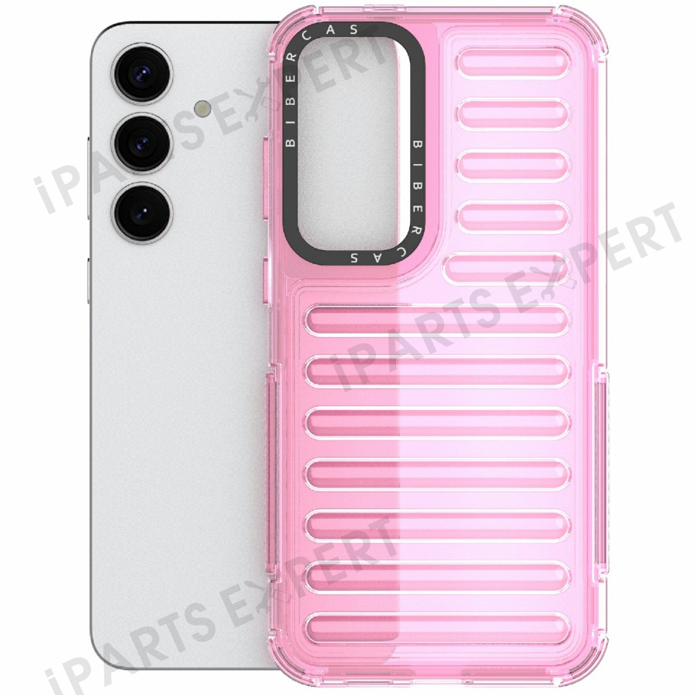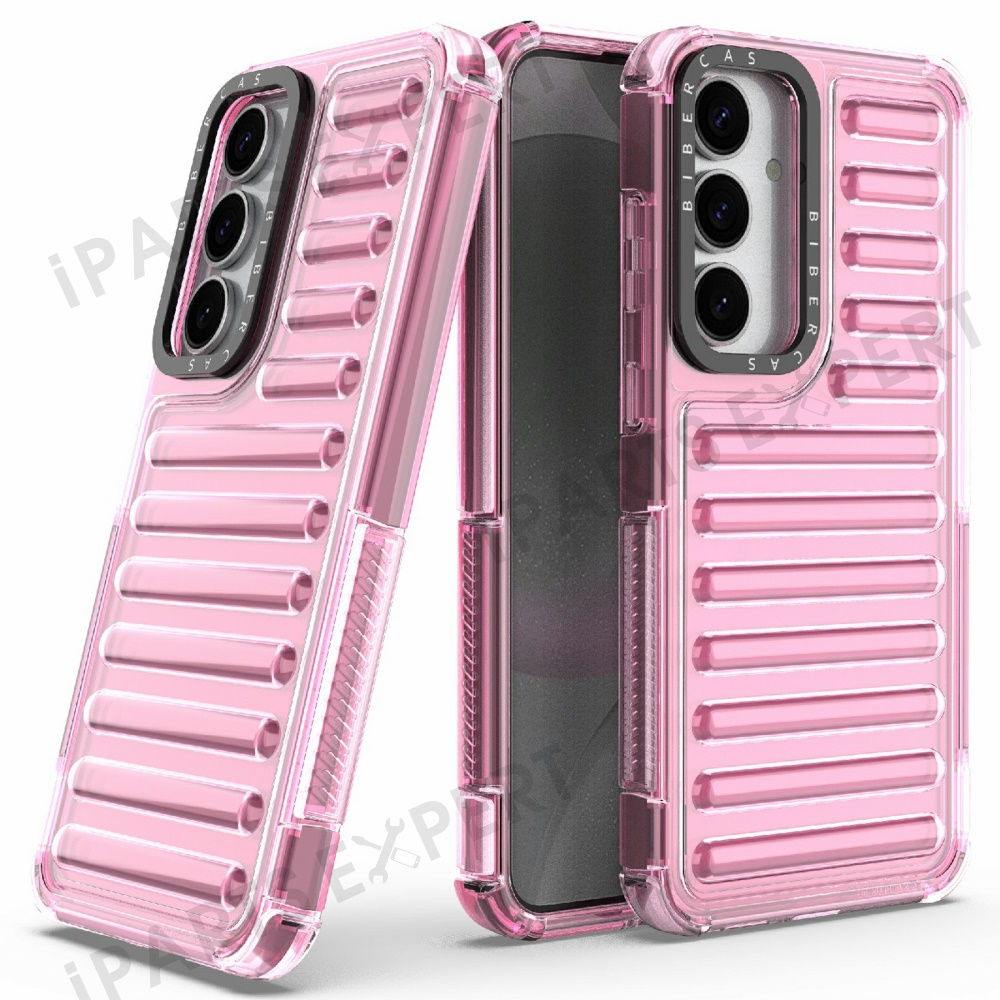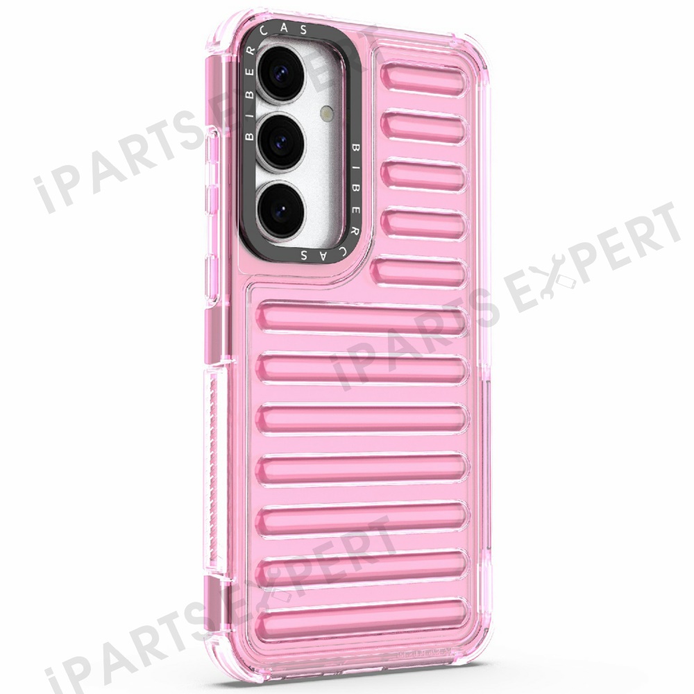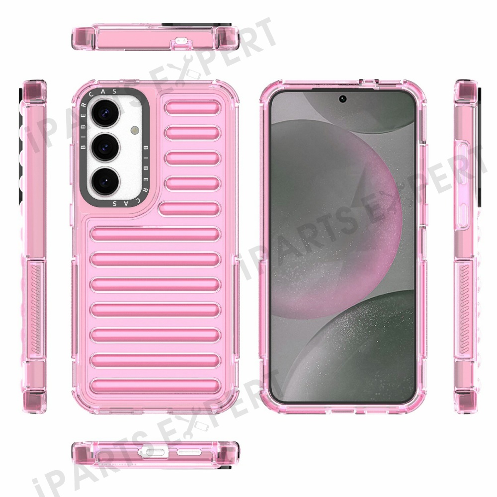 For Samsung Galaxy S25+ Case Stripe Design Anti-Slip Detachable TPU+PC Phone Cover - Light Pink
