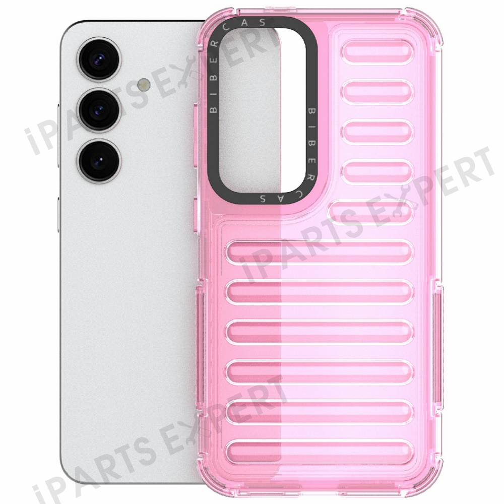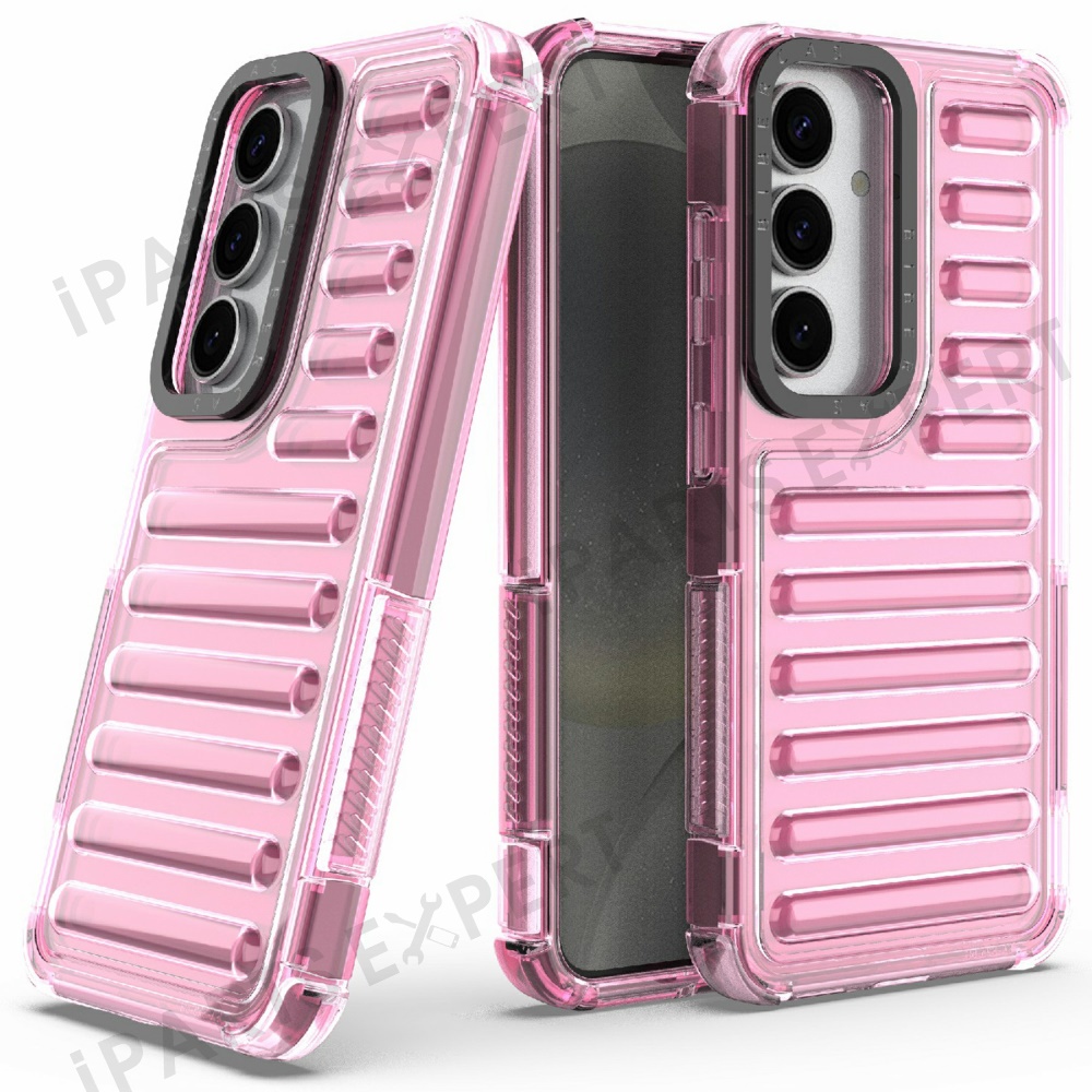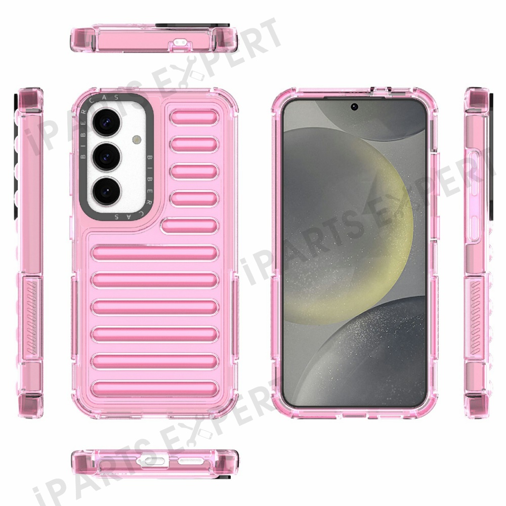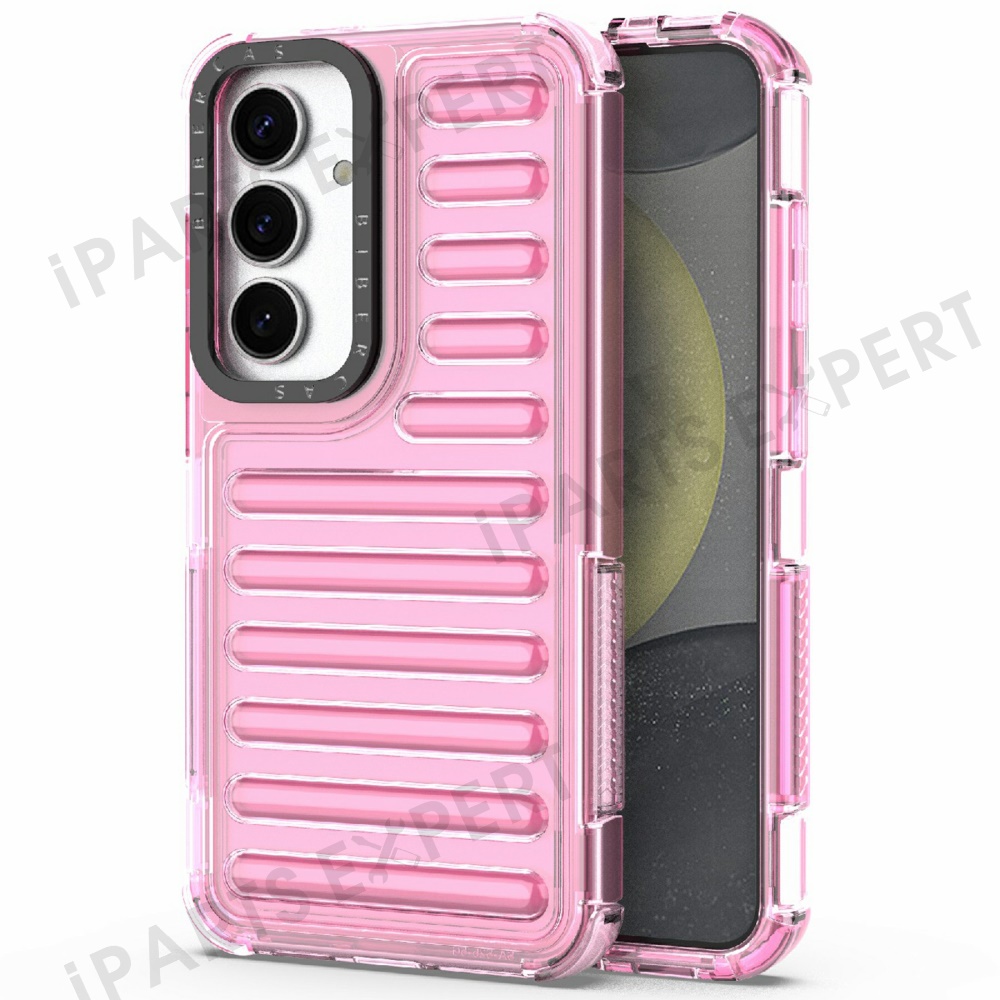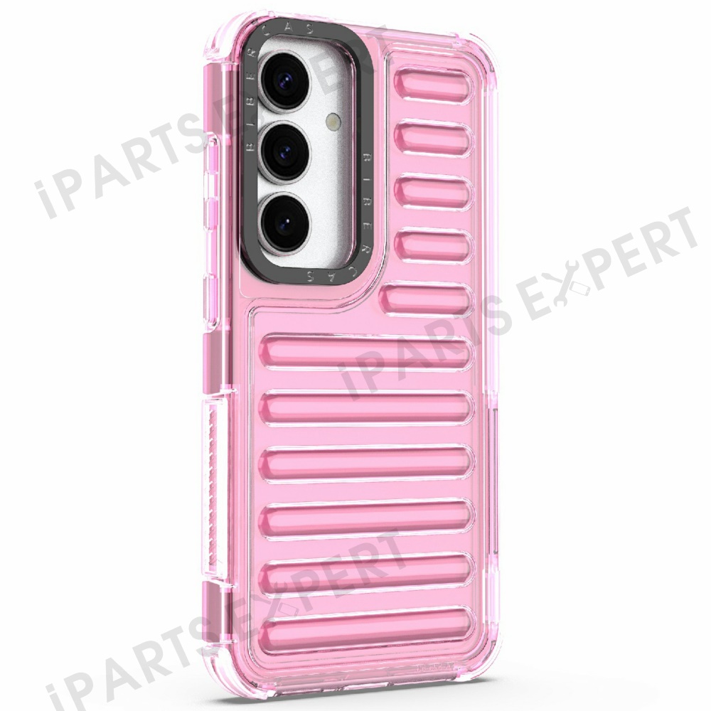 For Samsung Galaxy S25 Case Stripe Design Anti-Slip Detachable TPU+PC Phone Cover - Light Pink