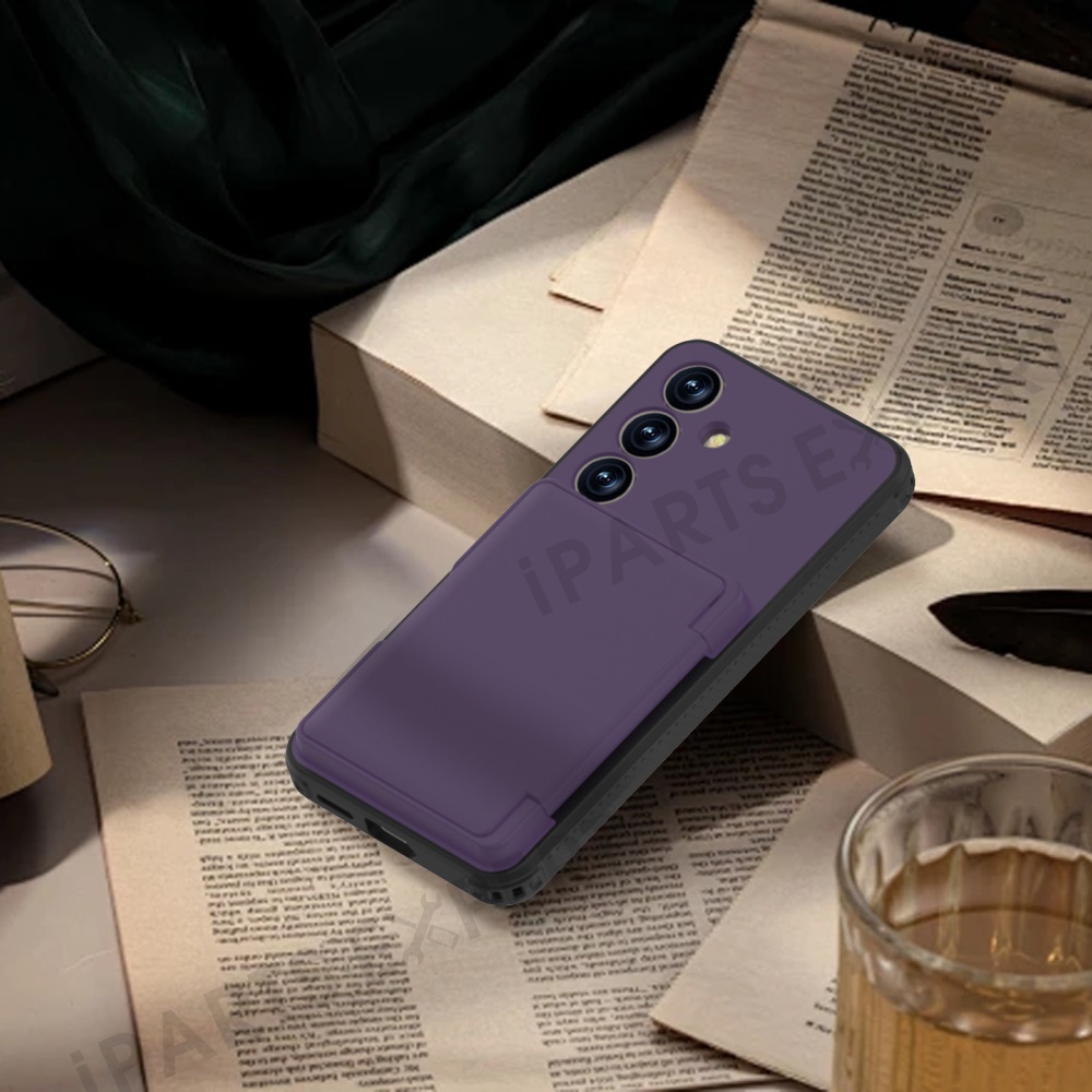 For Samsung Galaxy S25+ Case with Card Holder Hidden Mirror PC + TPU Kickstand Phone Cover - Dark Purple