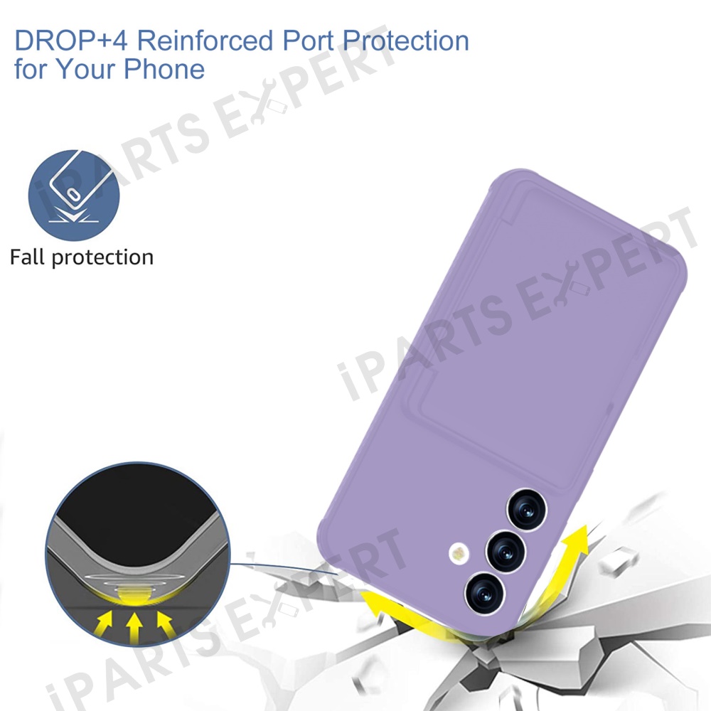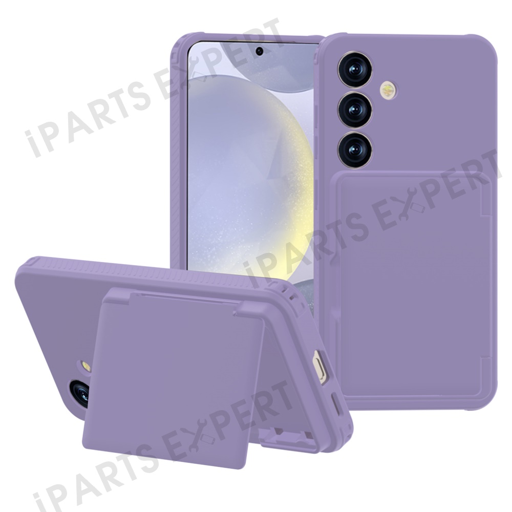 For Samsung Galaxy S25+ Case with Card Holder Hidden Mirror PC + TPU Kickstand Phone Cover - Light Purple