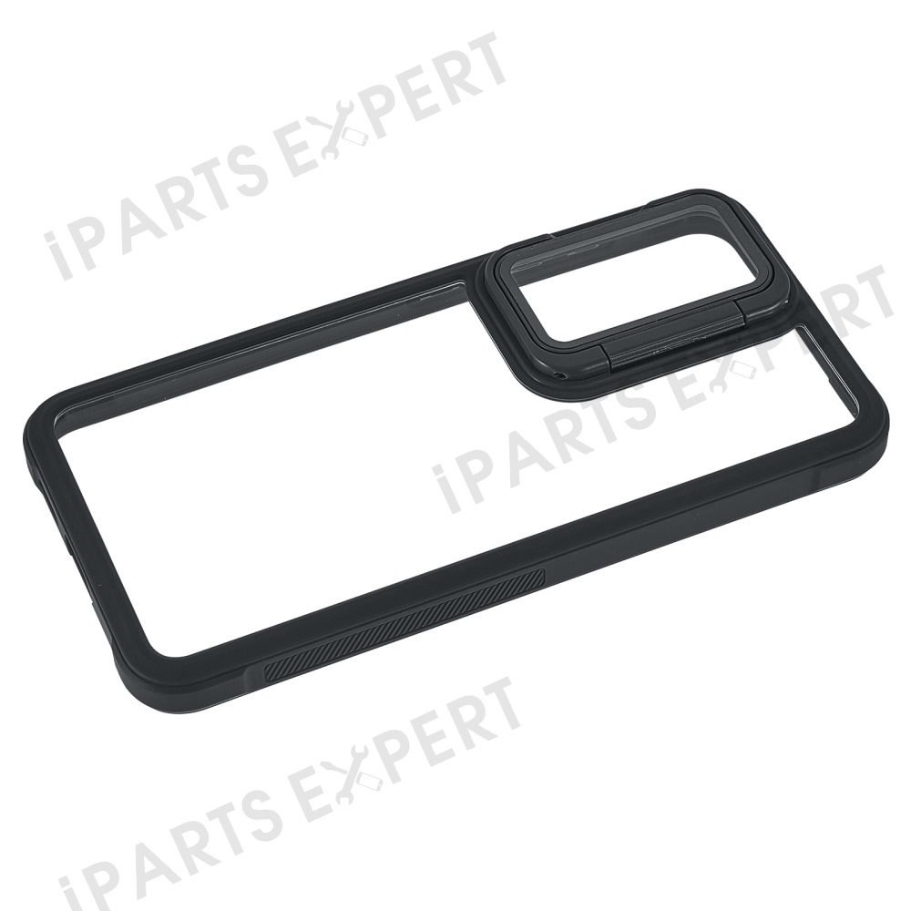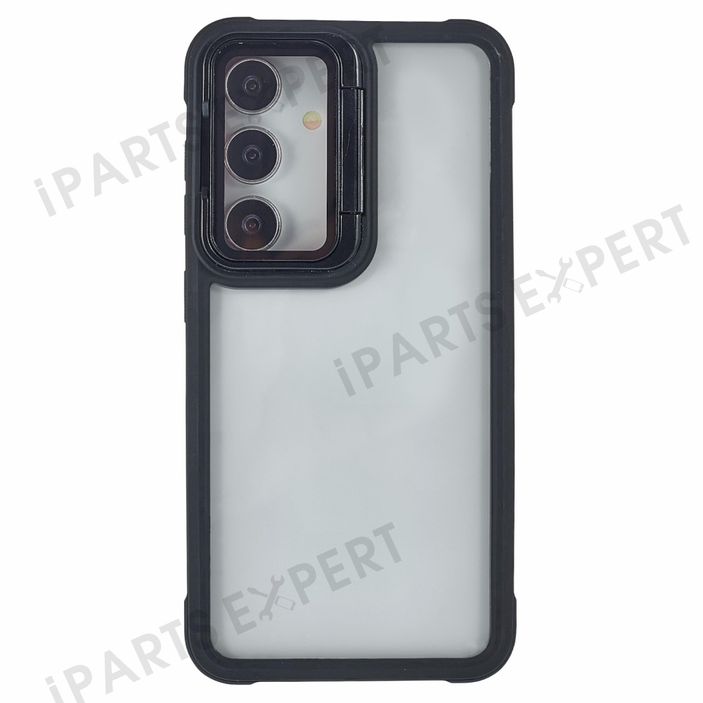 For Samsung Galaxy S25 Case with Lens Cover Kickstand PC+TPU Clear Back Phone Cover - Black