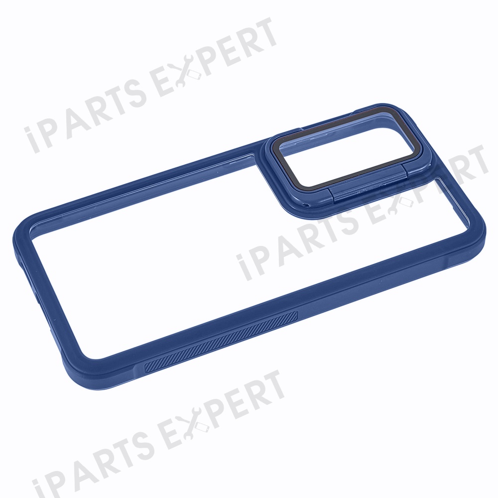 For Samsung Galaxy S25 Case with Lens Cover Kickstand PC+TPU Clear Back Phone Cover - Blue