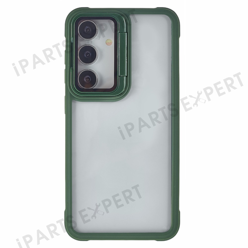 For Samsung Galaxy S25 Case with Lens Cover Kickstand PC+TPU Clear Back Phone Cover - Green