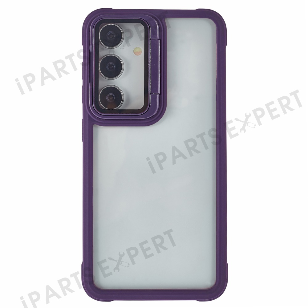 For Samsung Galaxy S25 Case with Lens Cover Kickstand PC+TPU Clear Back Phone Cover - Purple