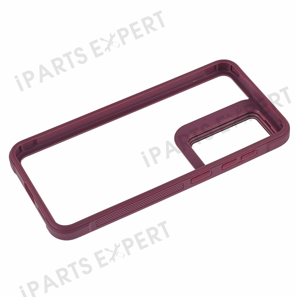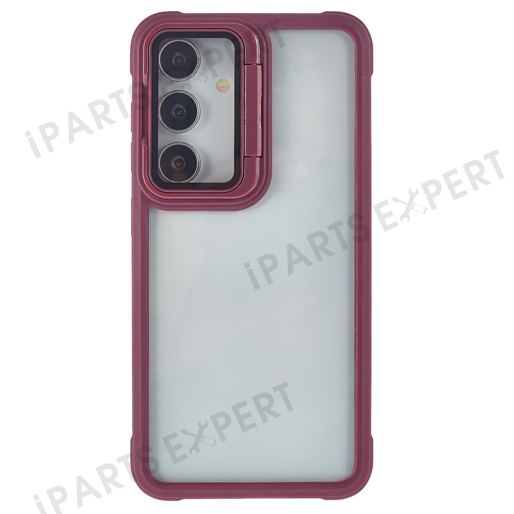 For Samsung Galaxy S25 Case with Lens Cover Kickstand PC+TPU Clear Back Phone Cover - Wine Red
