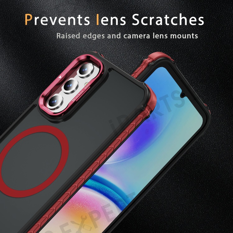 For Samsung Galaxy S25+ Case with Lens Kickstand Matte Back Cover Magnetic Case - Red