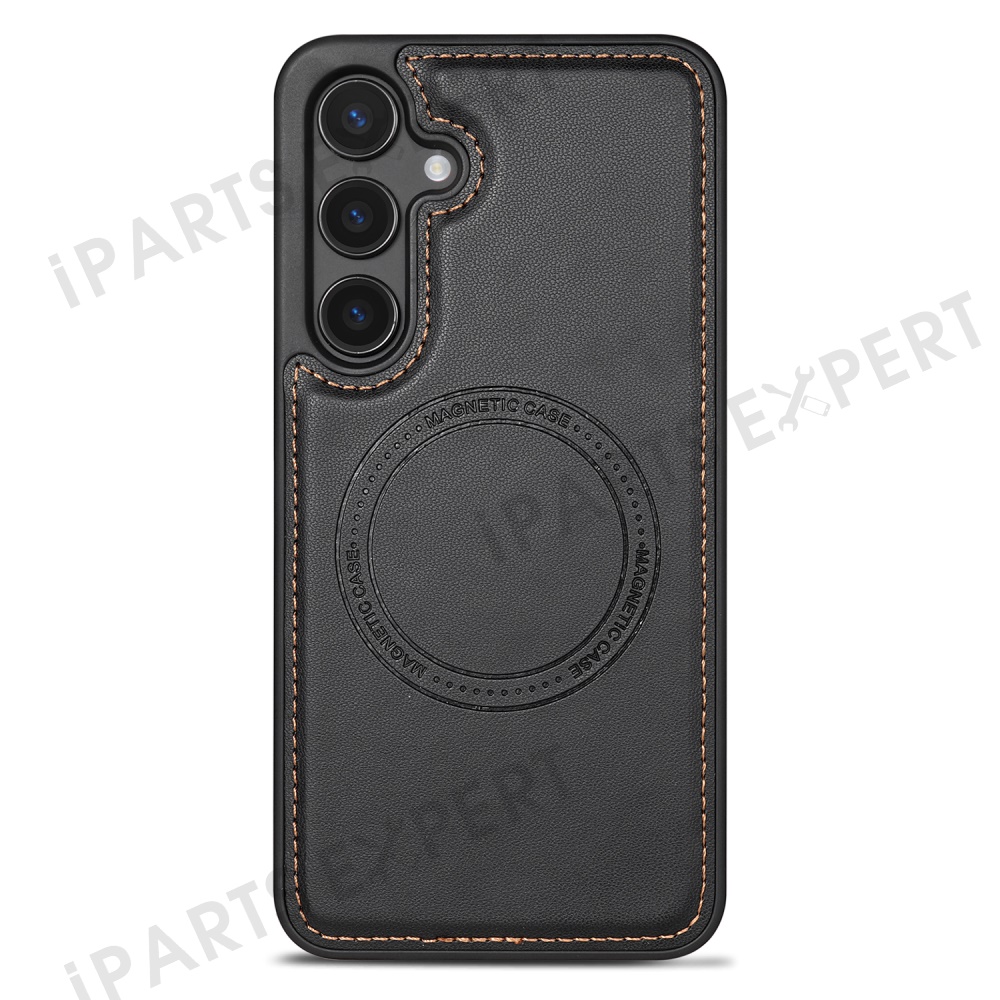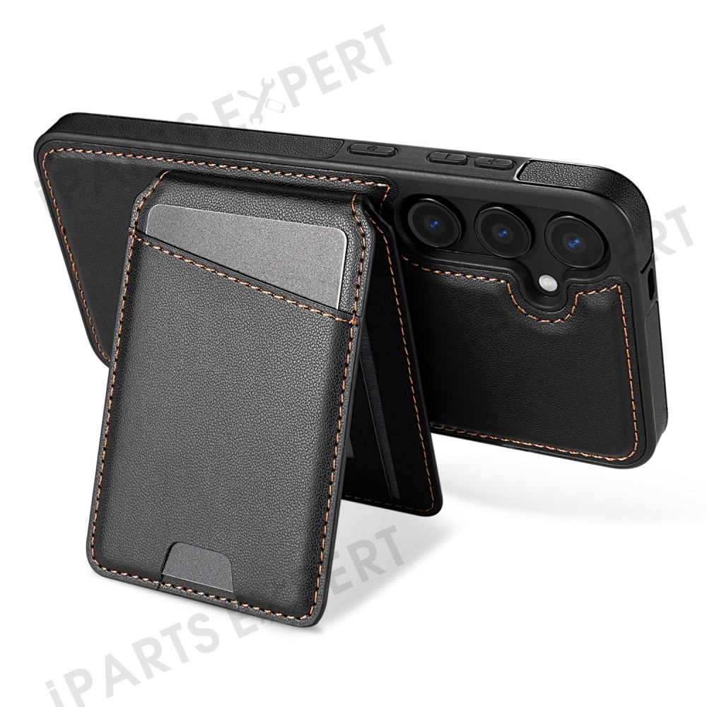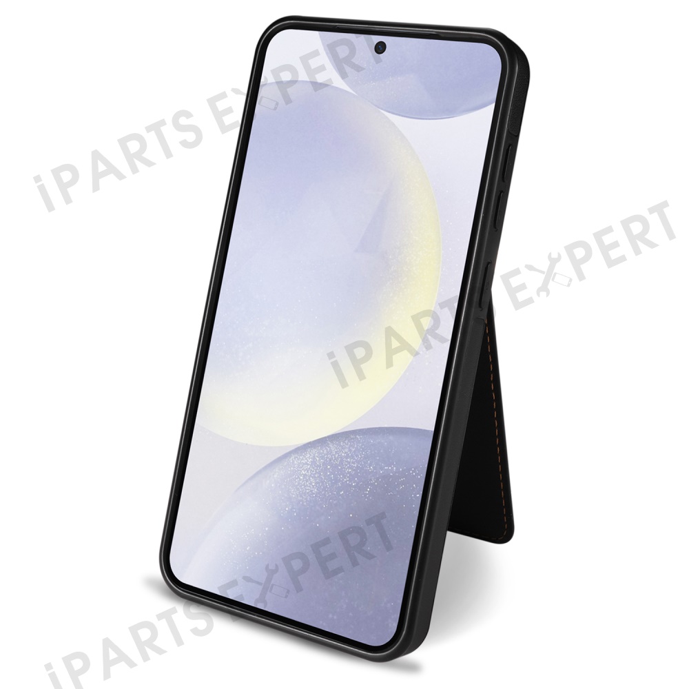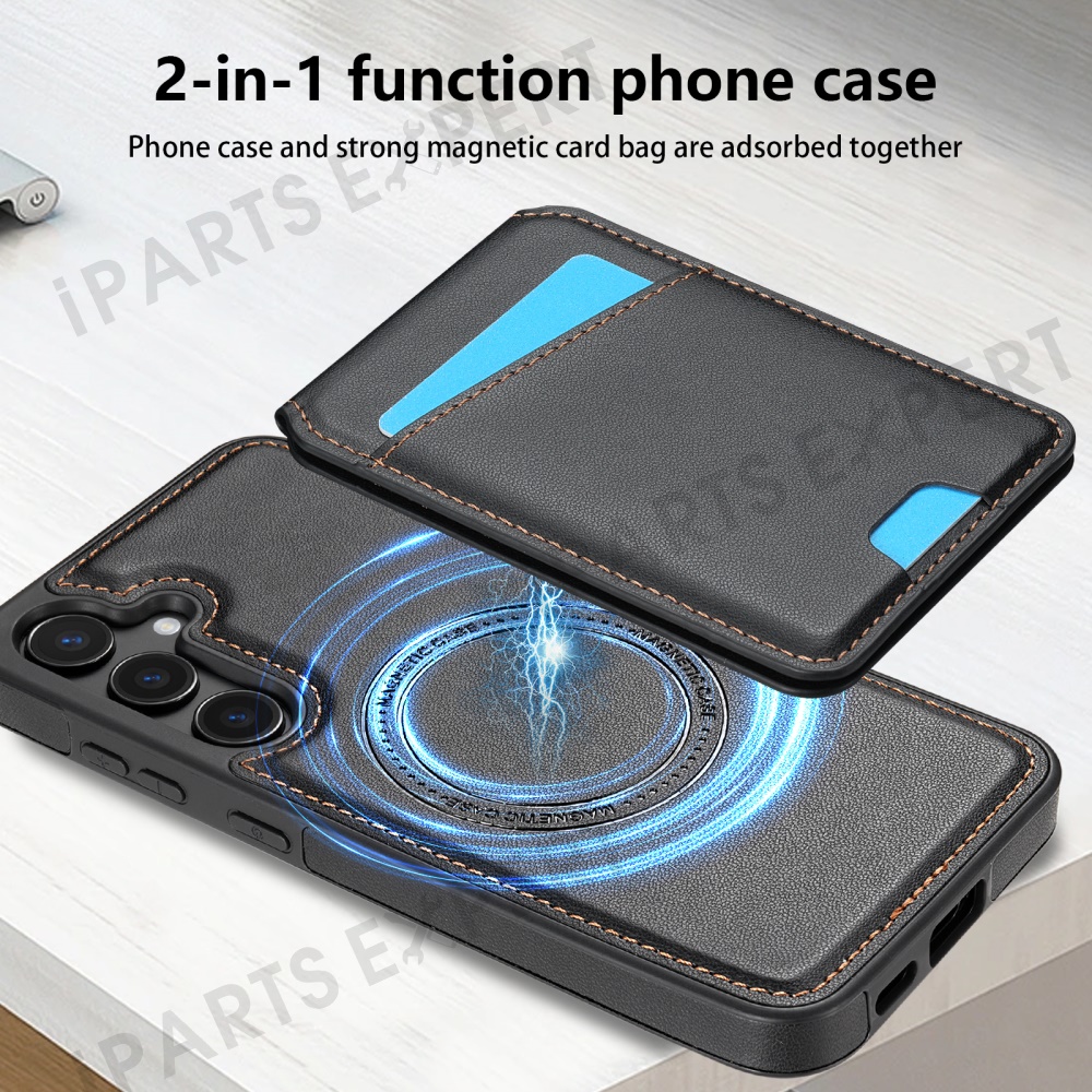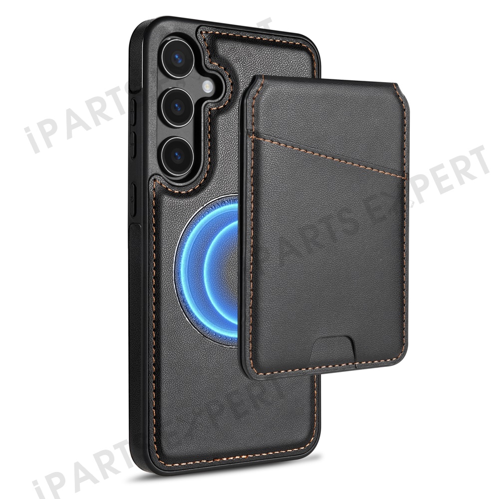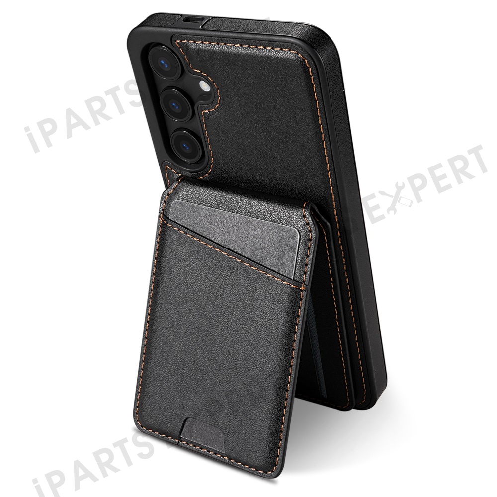 For Samsung Galaxy S25 Magnetic Case Detachable Card Holder Kickstand Leather Phone Back Cover - Black