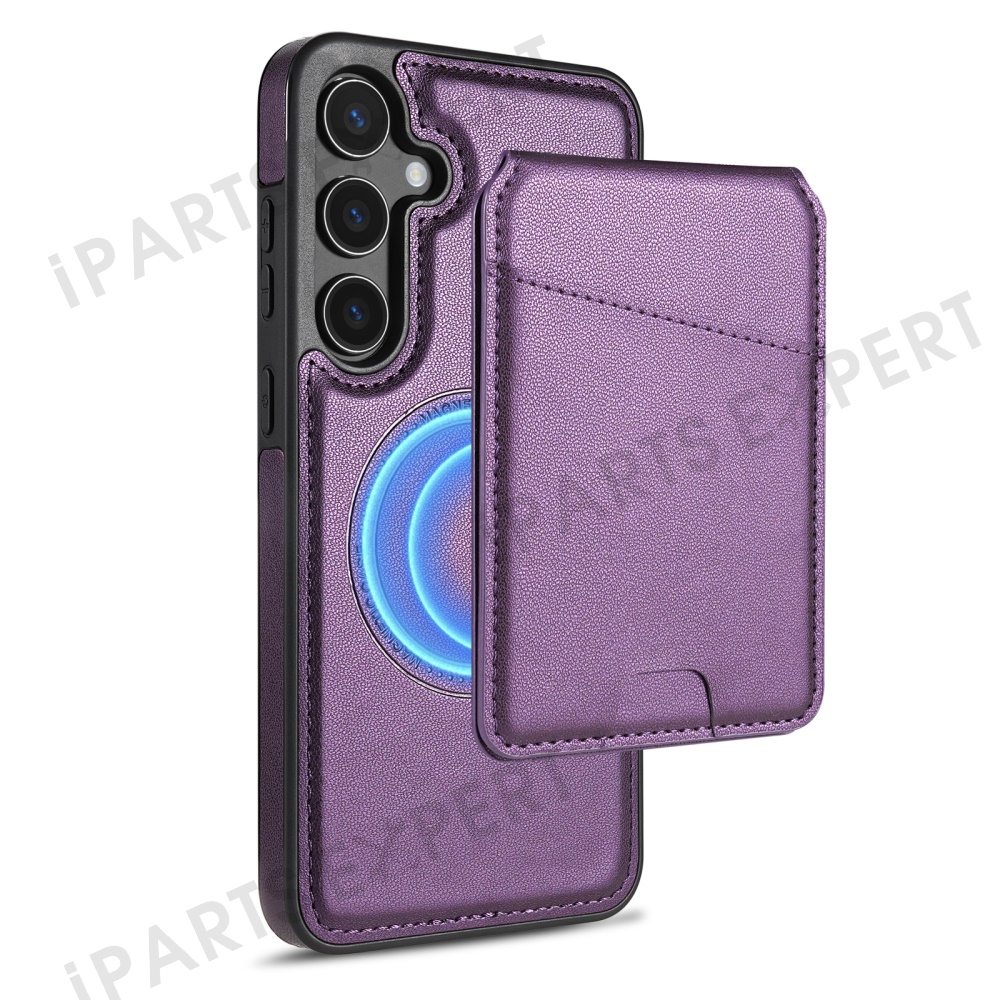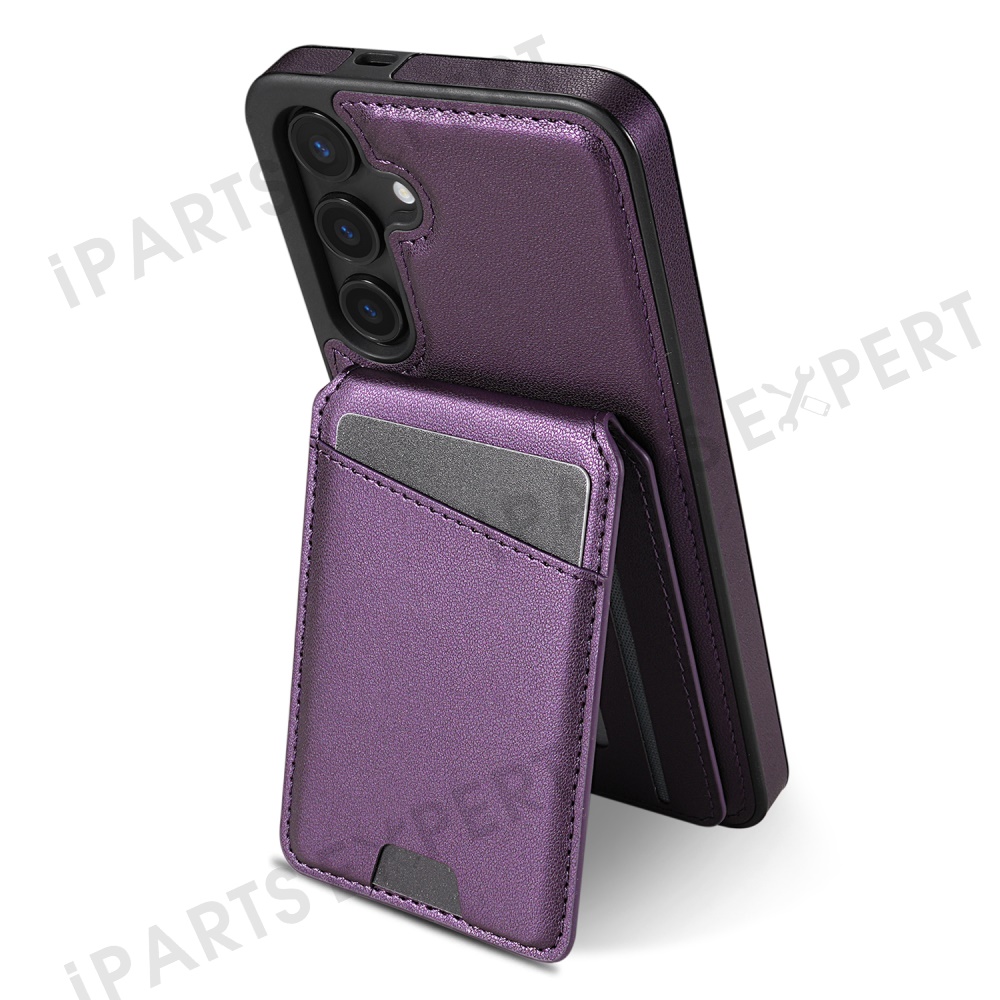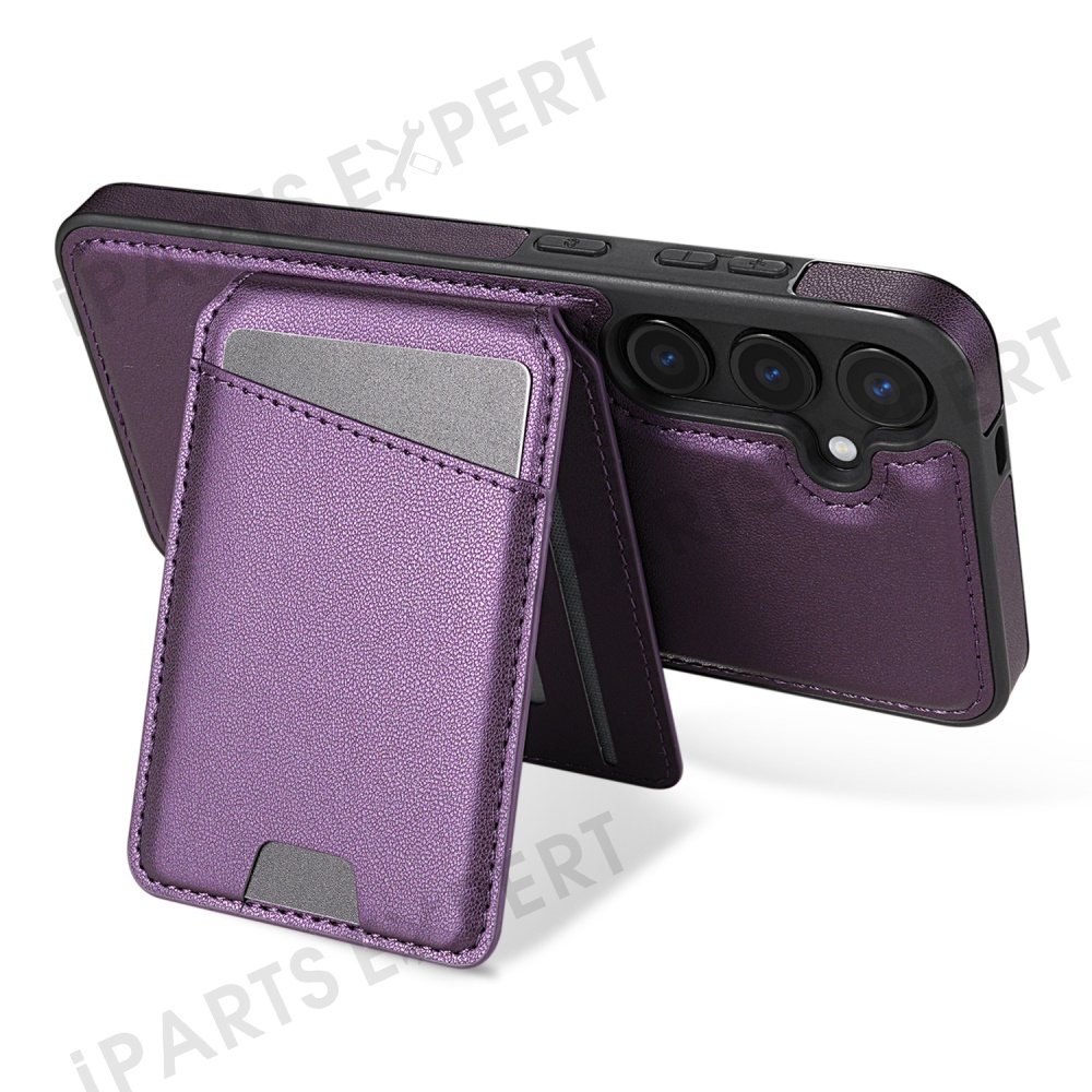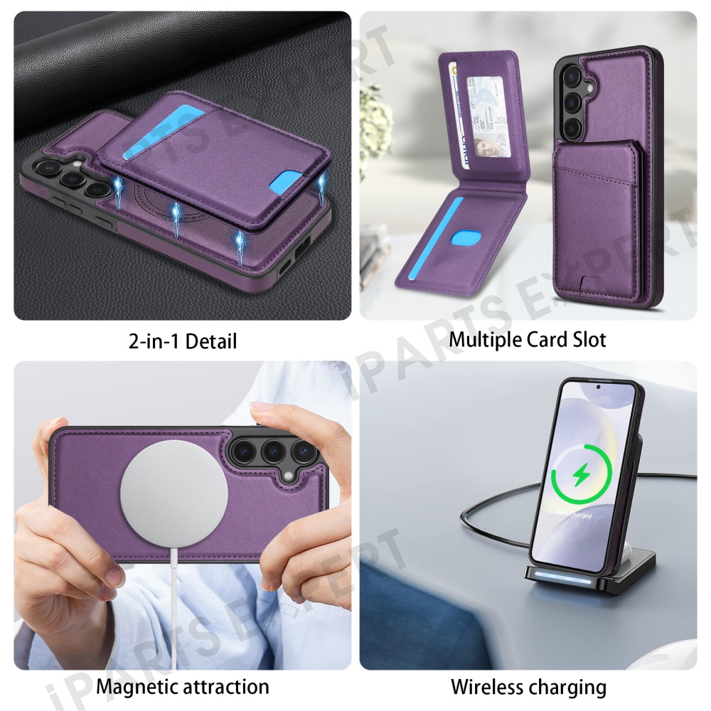 For Samsung Galaxy S25 Magnetic Case Detachable Card Holder Kickstand Leather Phone Back Cover - Purple