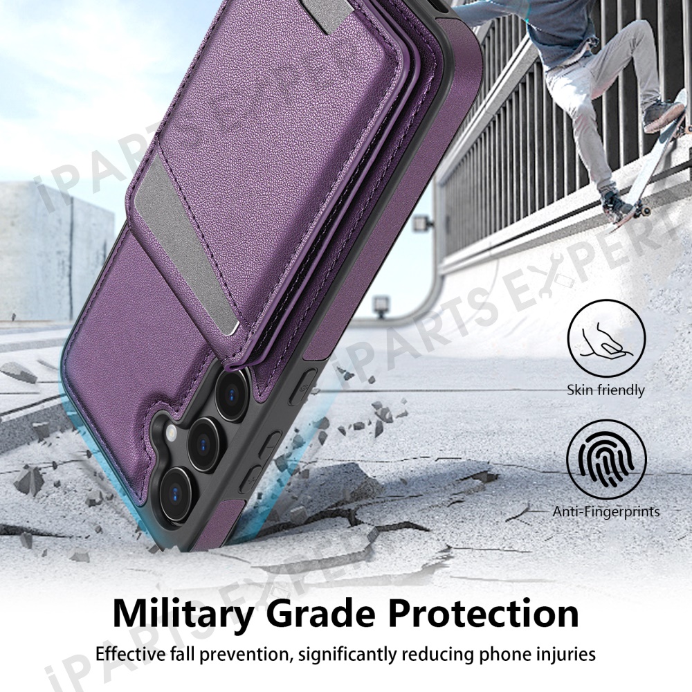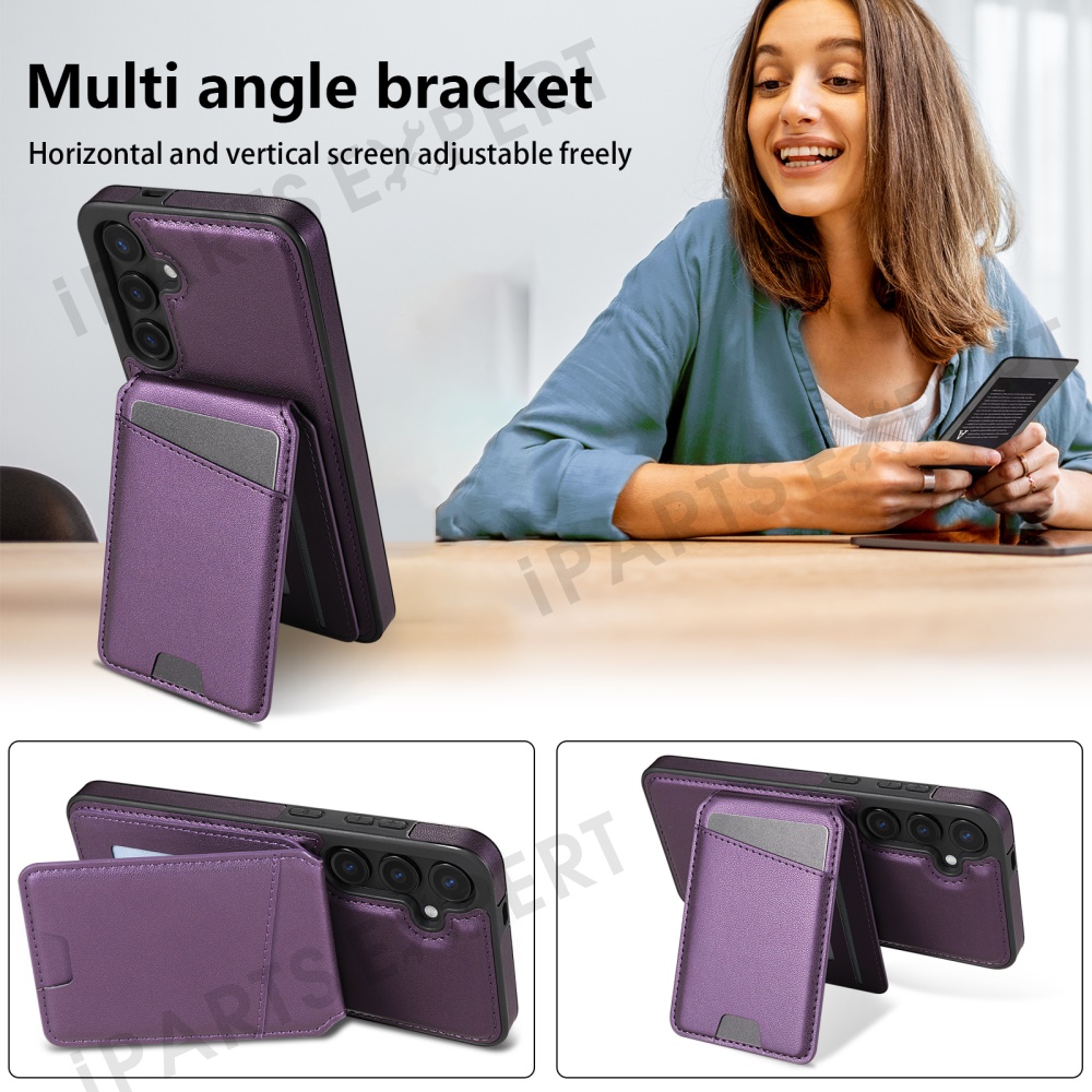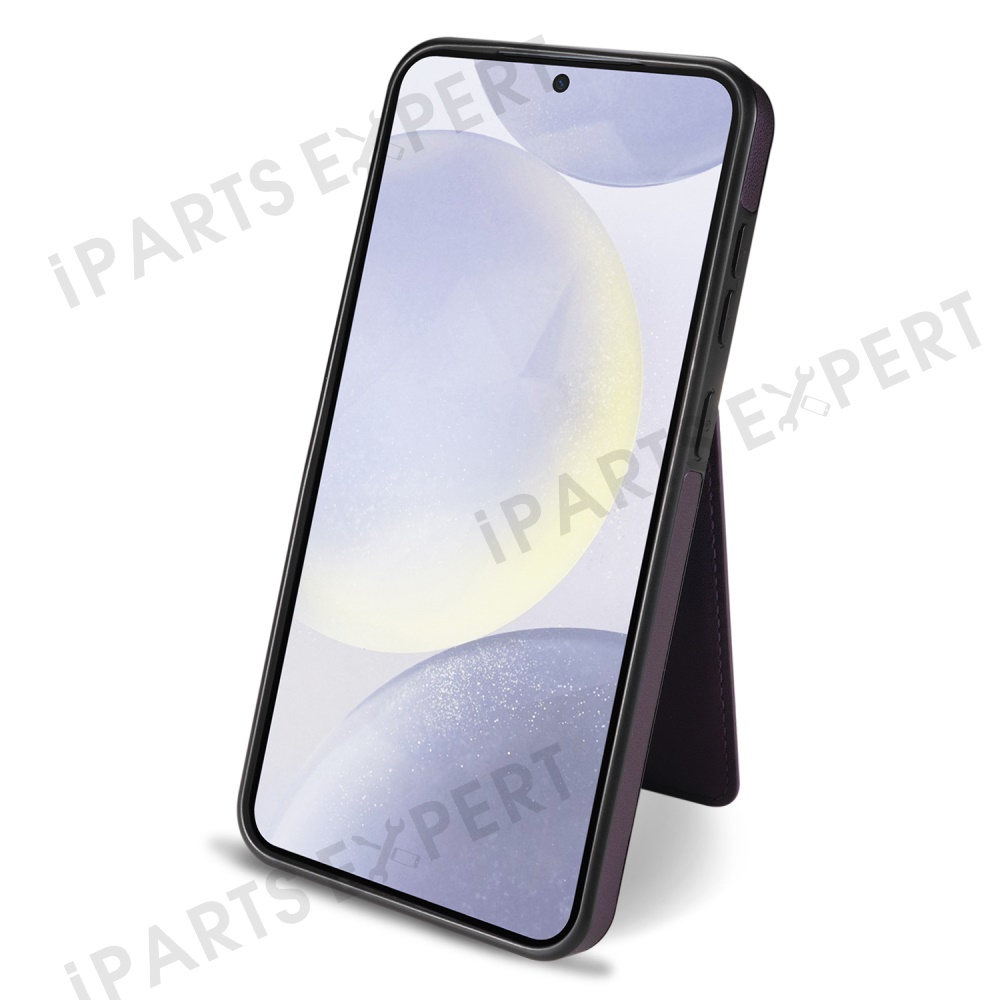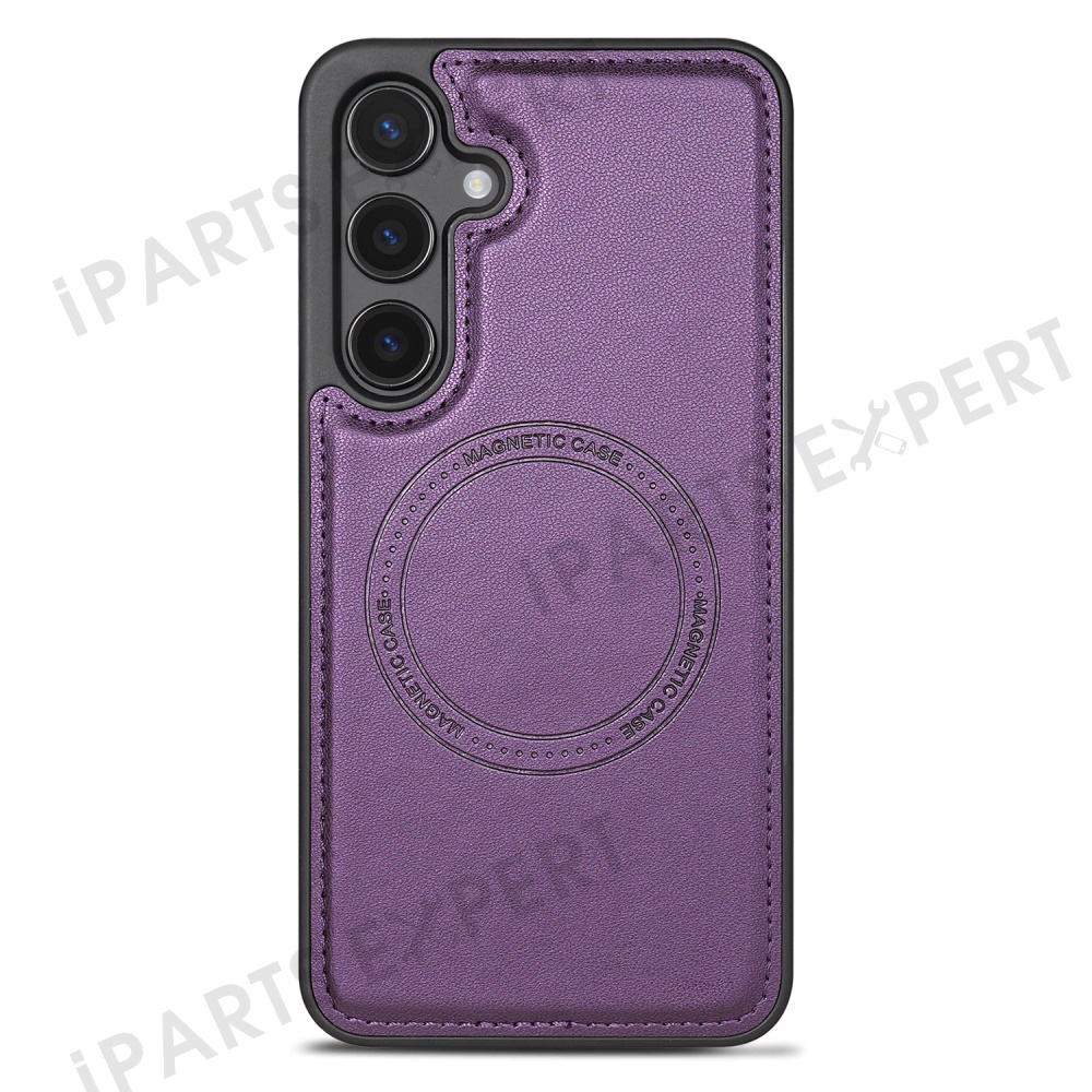 For Samsung Galaxy S25 Magnetic Case Detachable Card Holder Kickstand Leather Phone Back Cover - Purple
