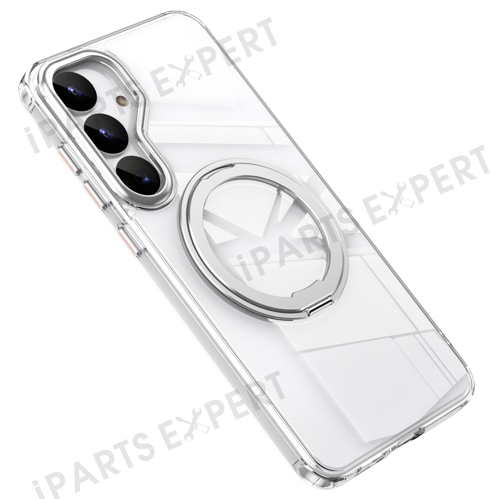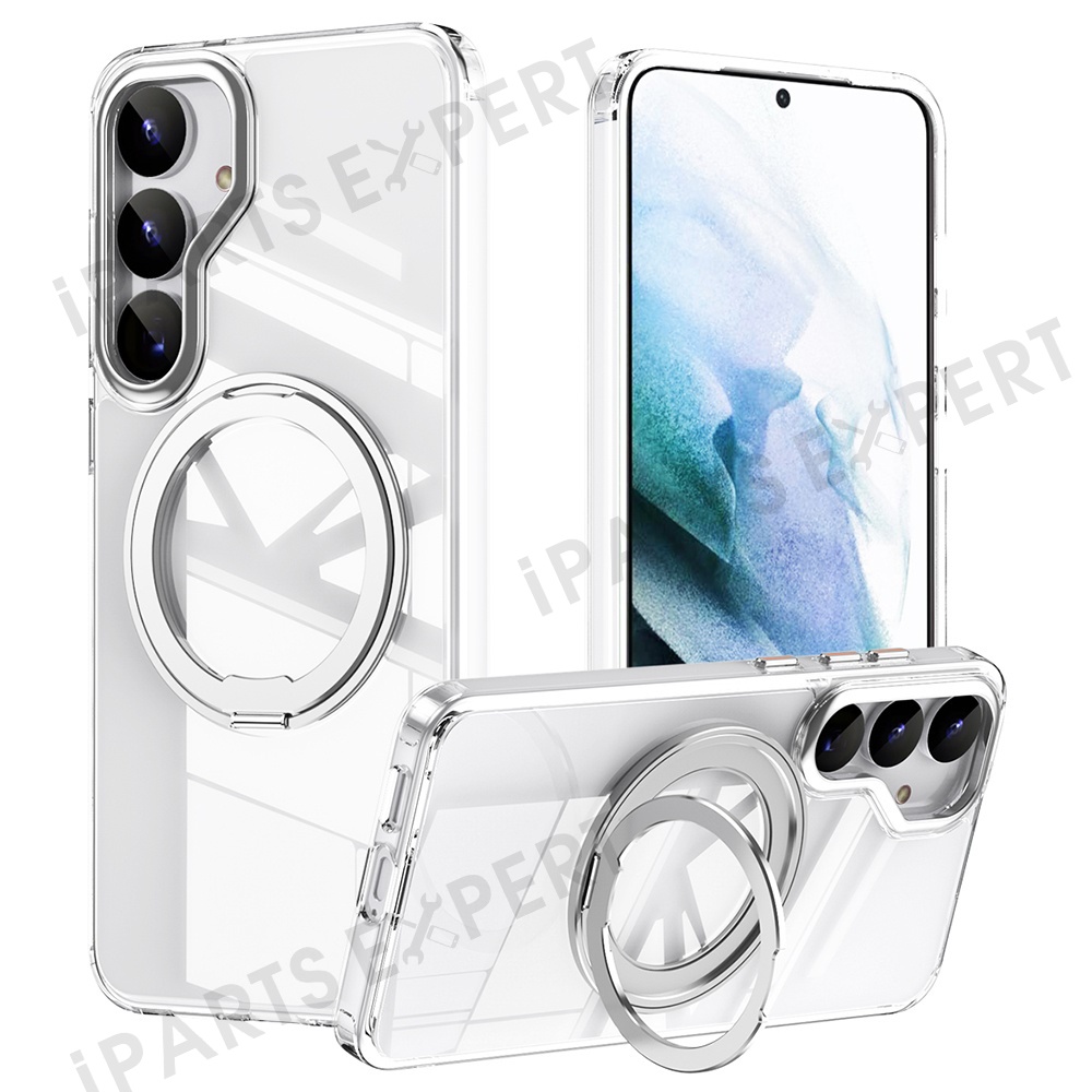 For Samsung Galaxy S25+ Magnetic Case TPU + Acrylic + Metal Kickstand Matte Phone Cover - Transparent