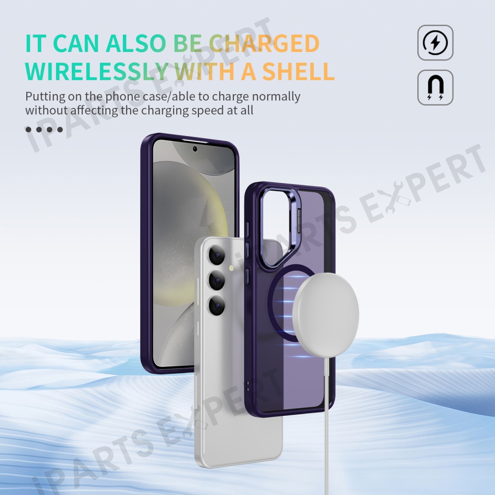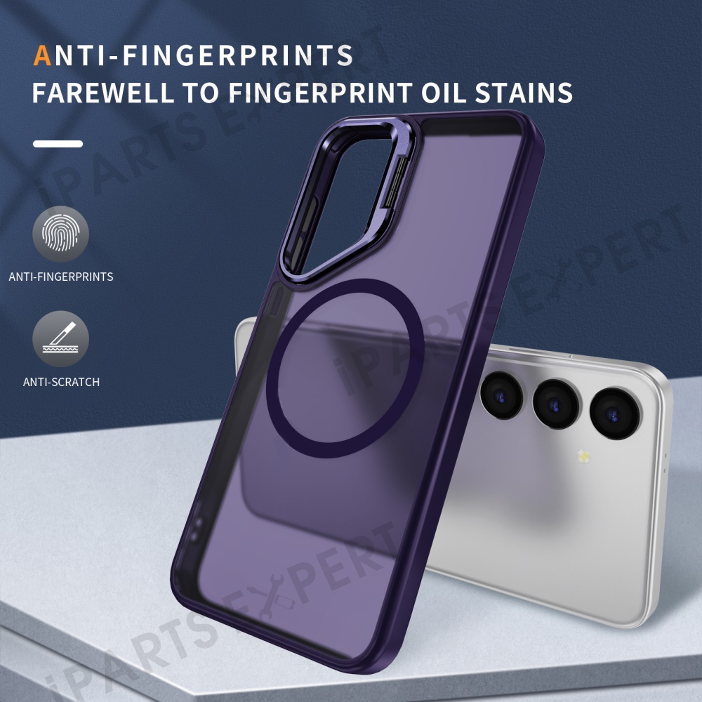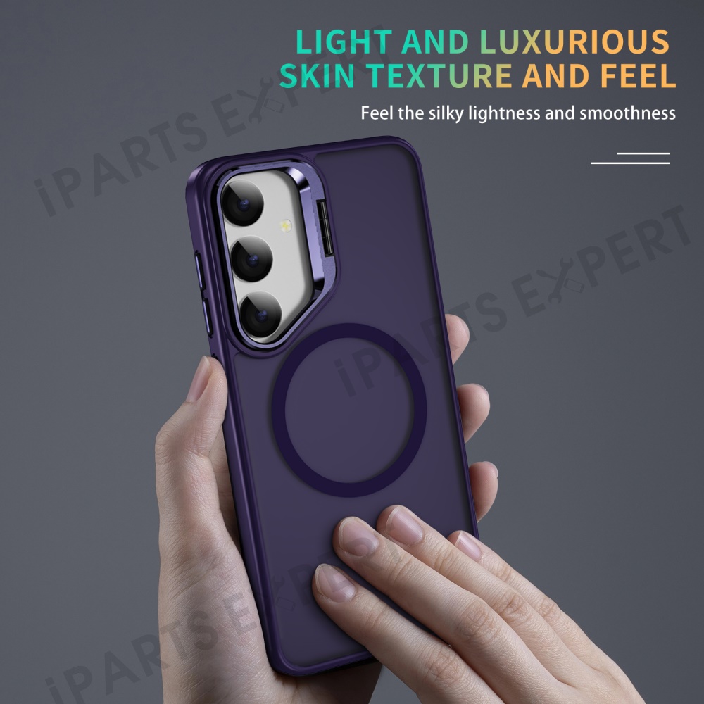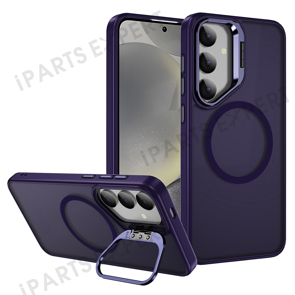 For Samsung Galaxy S25+ Magnetic Case with Lens Kickstand Skin-Touch PC + TPU Phone Cover - Dark Purple