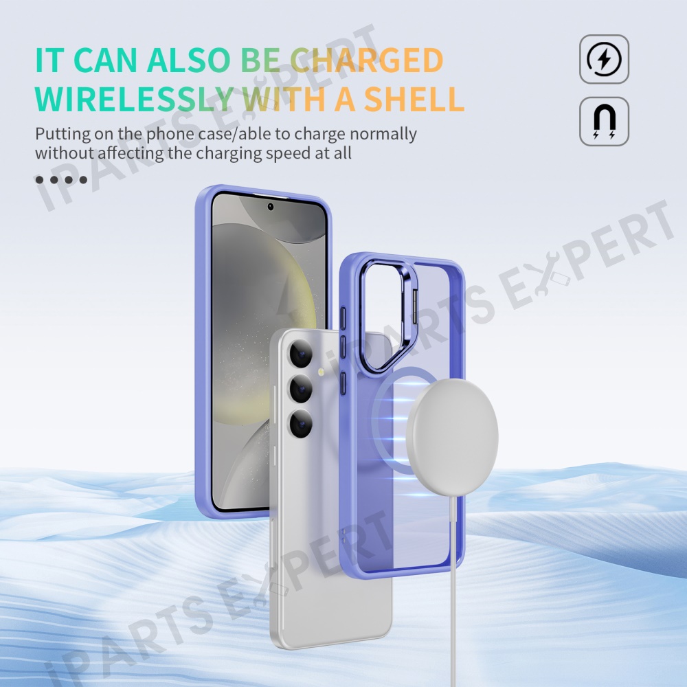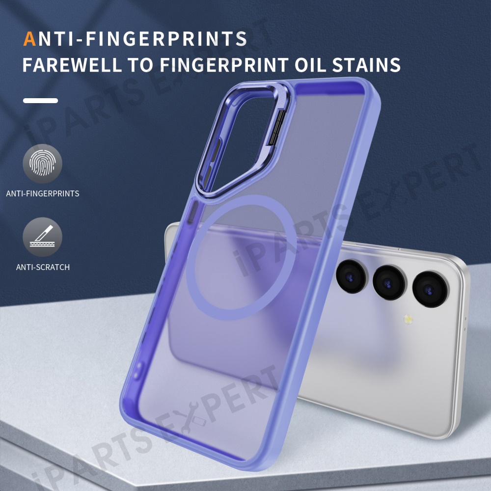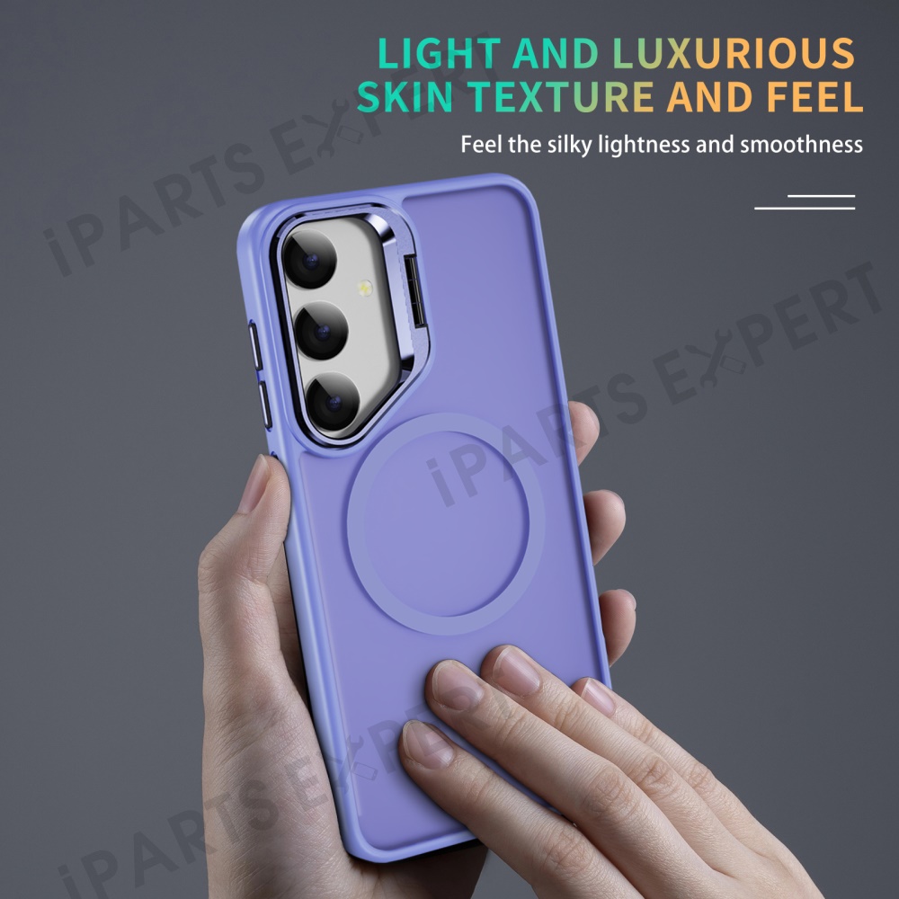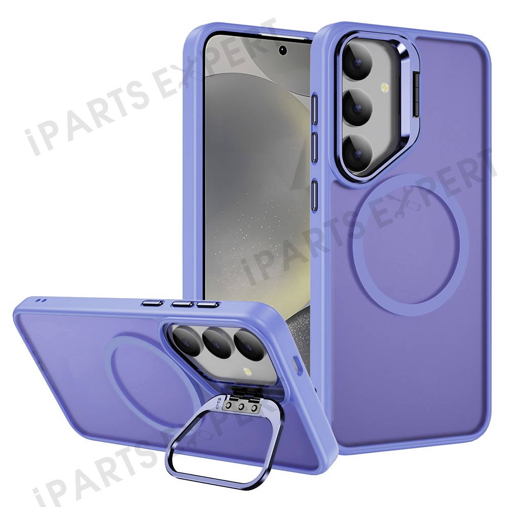 For Samsung Galaxy S25+ Magnetic Case with Lens Kickstand Skin-Touch PC + TPU Phone Cover - Light Purple