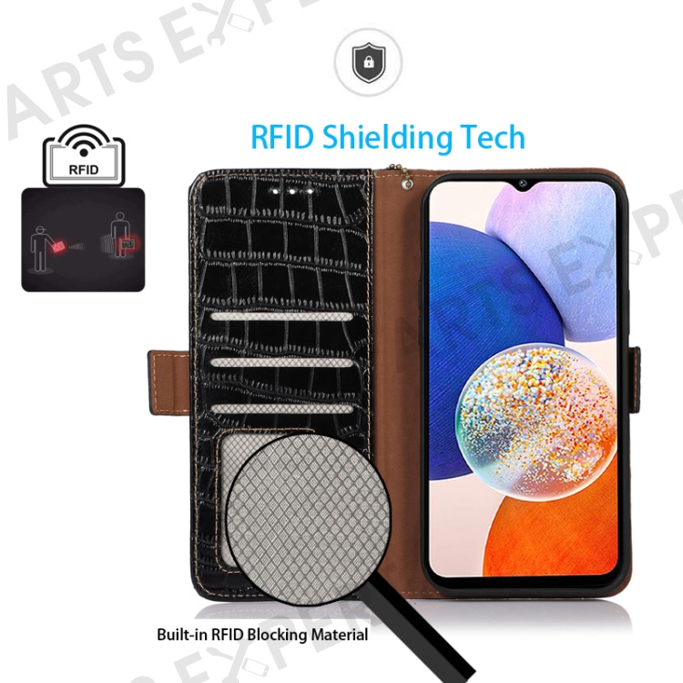 This case is made of crocodile texture genuine cow leather which is durable, smooth and soft. Slim fit TPU materials make your phone light to carry and easy to install. The built-in card slot effectively blocks signals and protects your personal card from swiping, also easy to organize your cash money.