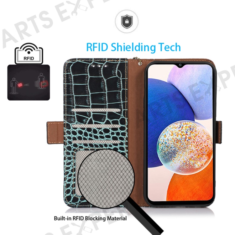 - Premium crocodile texture genuine cow leather and TPU material