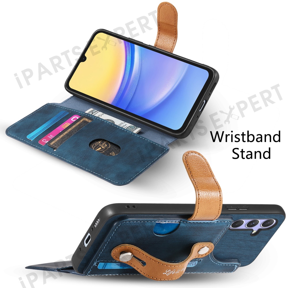 For Samsung Galaxy S25+ / S24+ Case Wallet Retro Leather Phone Cover with Wristband Kickstand - Blue