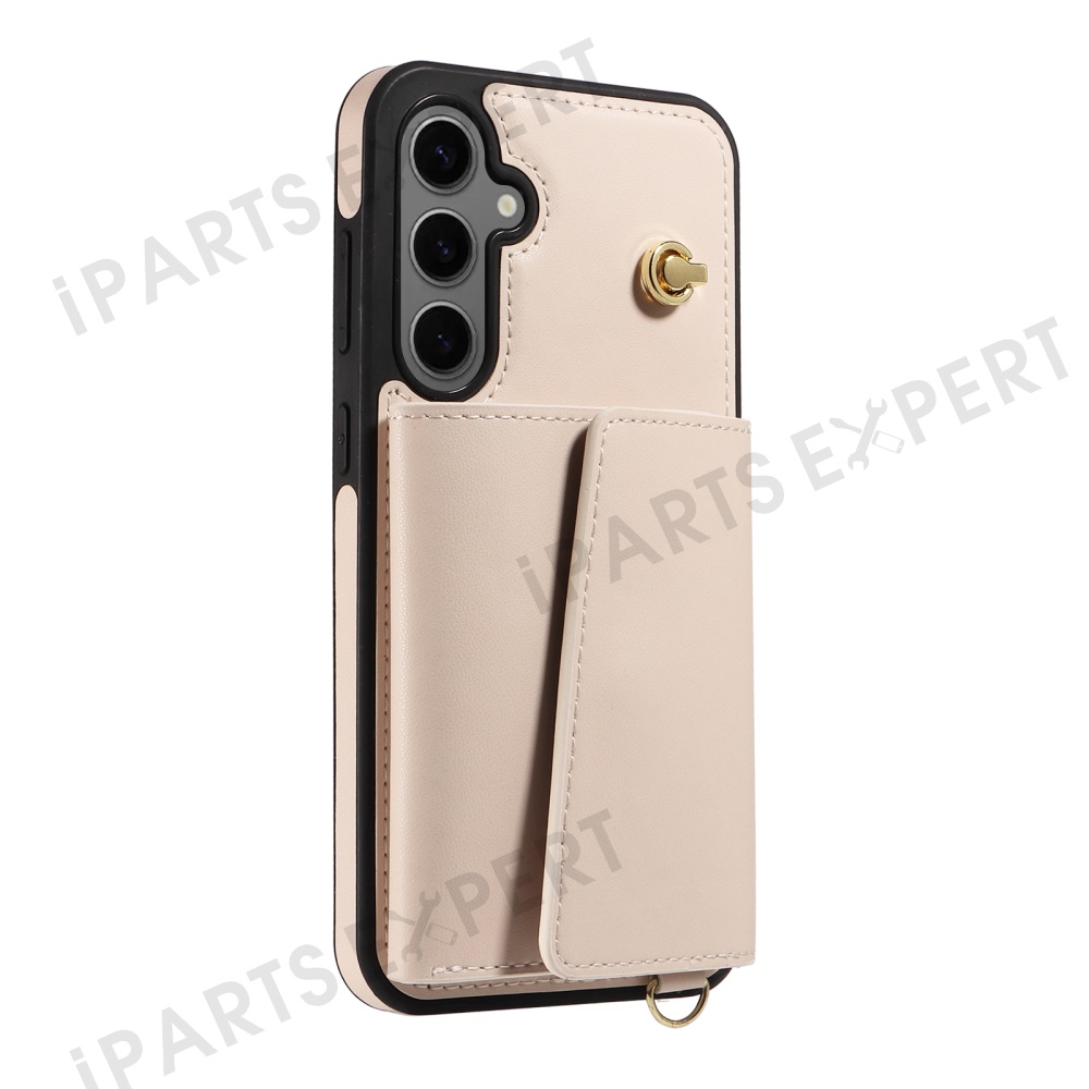 For Samsung Galaxy S25+ / S24+ Crossbody Phone Case Card Holder Kickstand Leather Coated TPU Mobile Cover - Beige