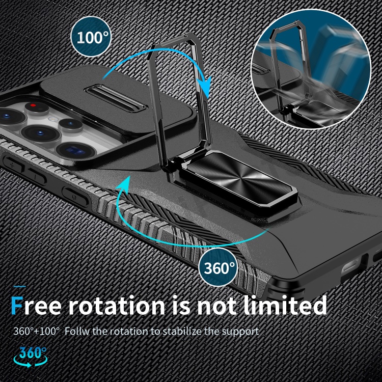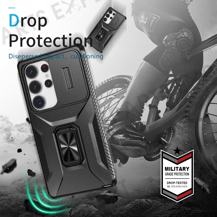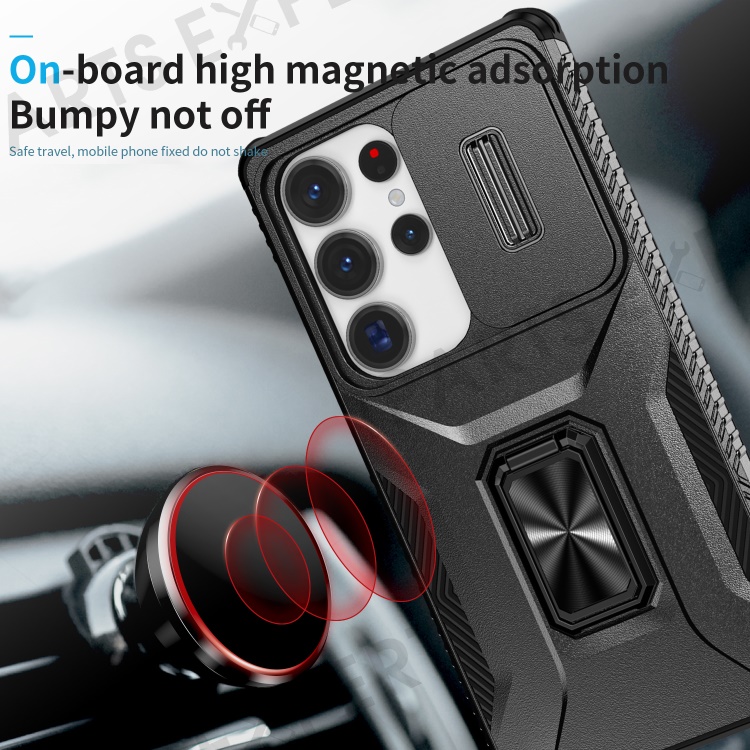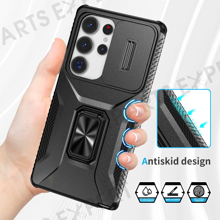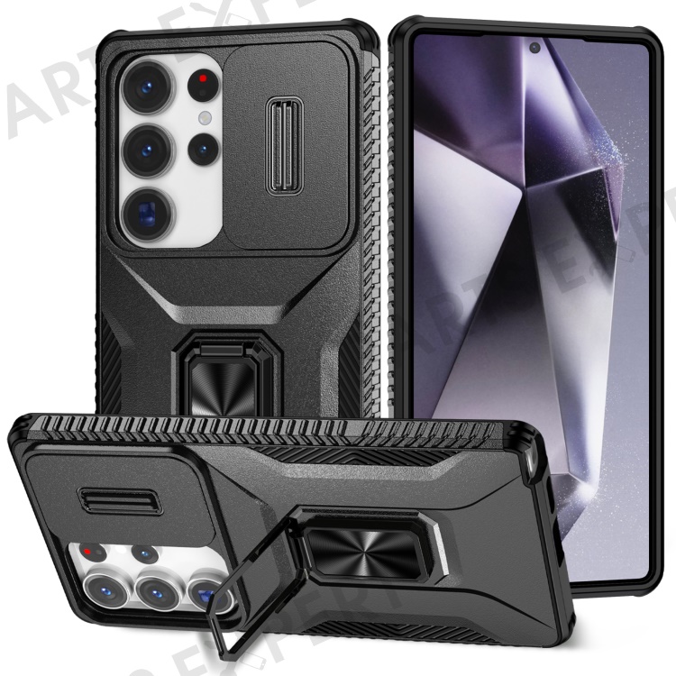 For Samsung Galaxy S25 Ultra Case Camshield Kickstand TPU+PC Anti-Slip Phone Cover - Black