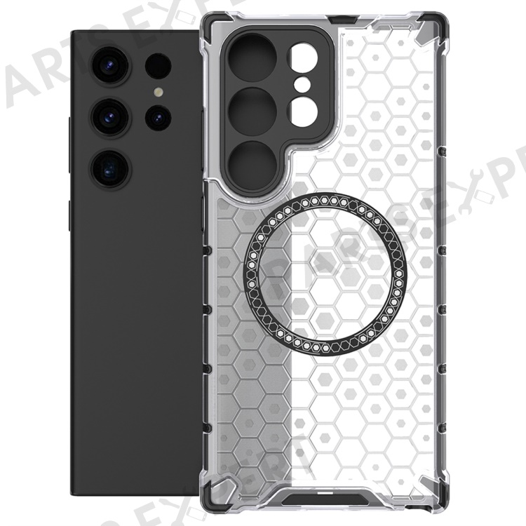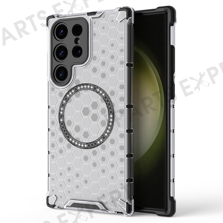 For Samsung Galaxy S25 Ultra Magnetic Case Honeycomb Design TPU+PC Phone Cover - Transparent